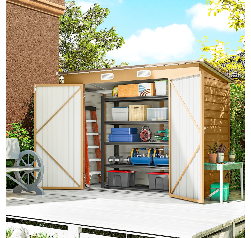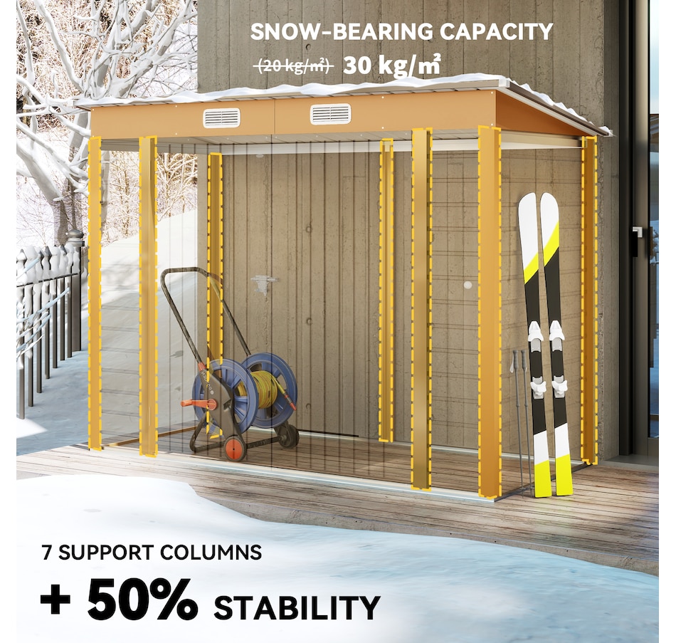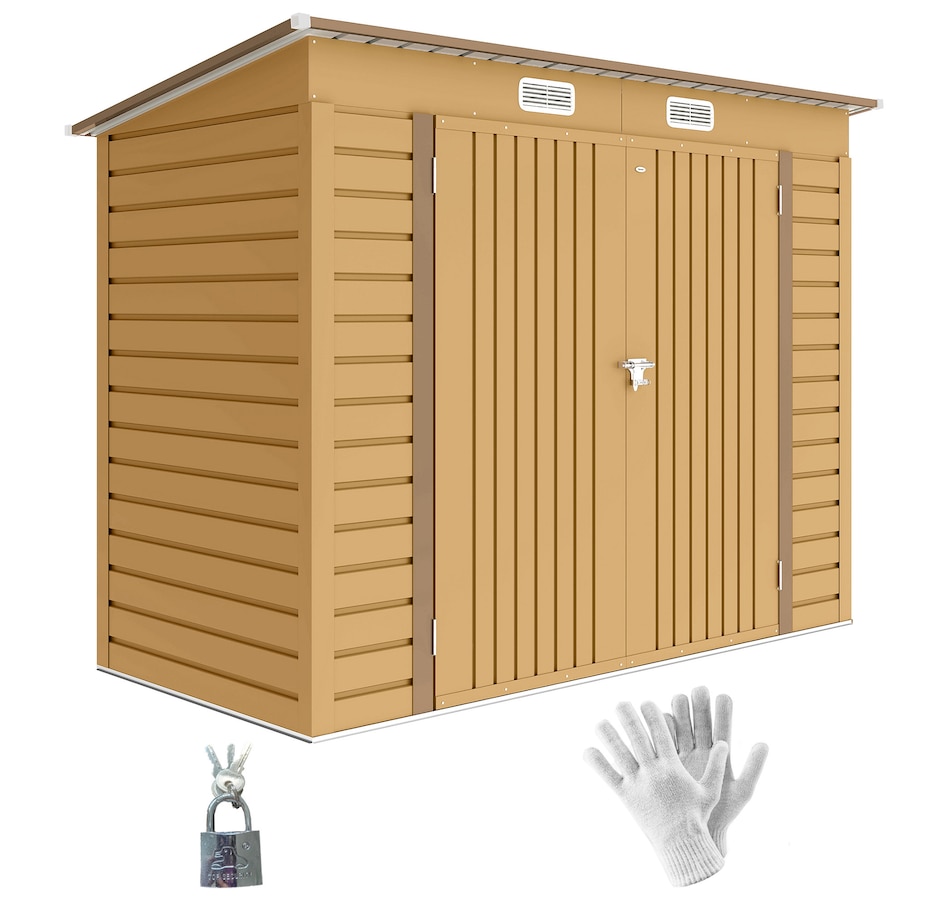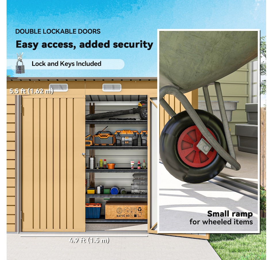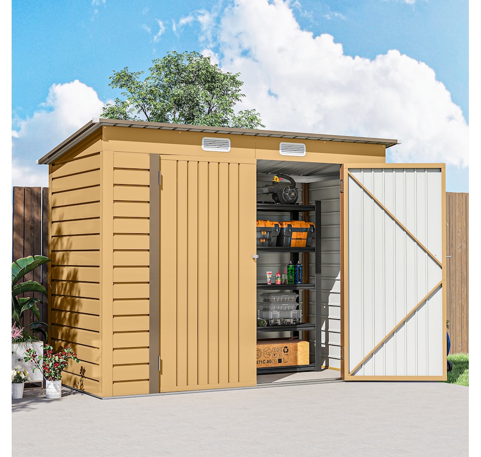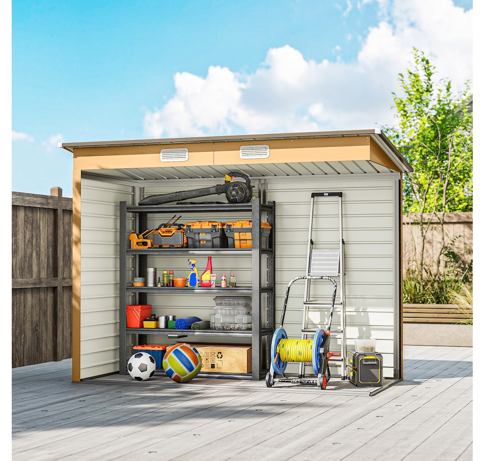 8 x 4FT Metal Garden Storage Shed with 2 Vents, Yellow