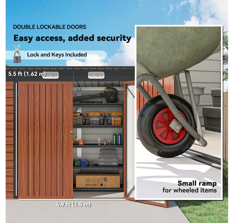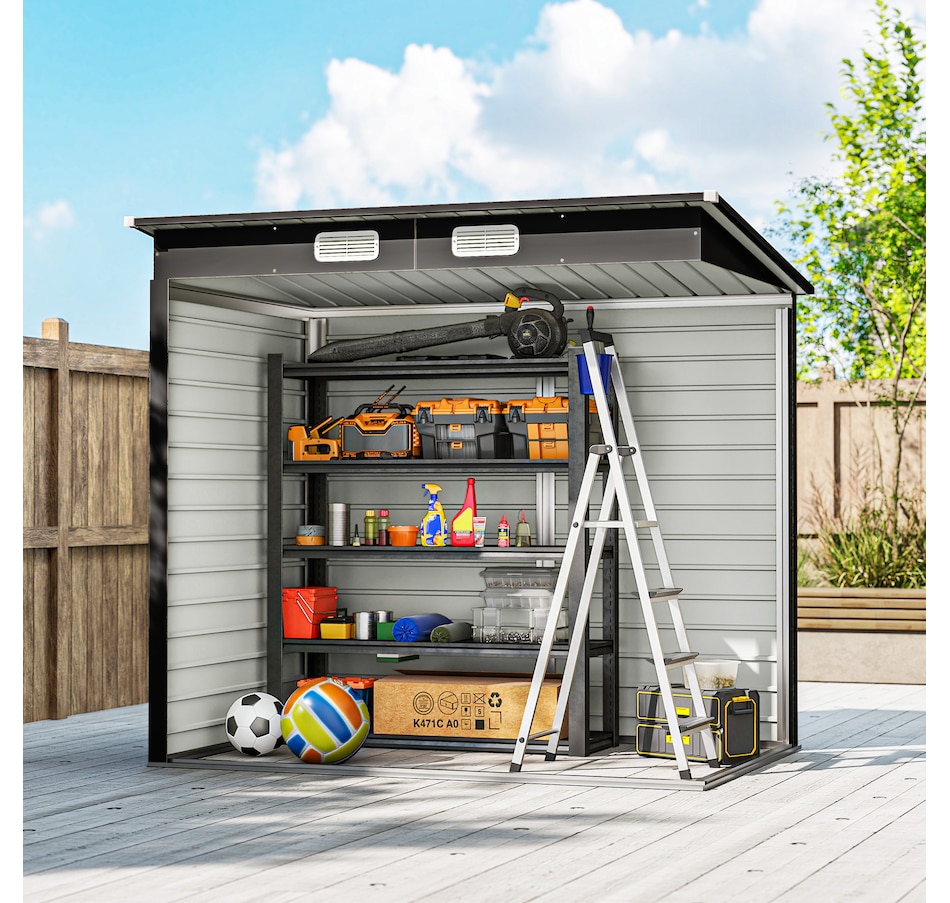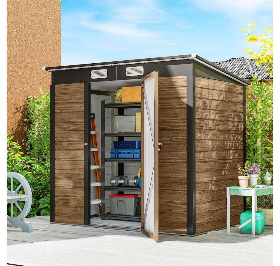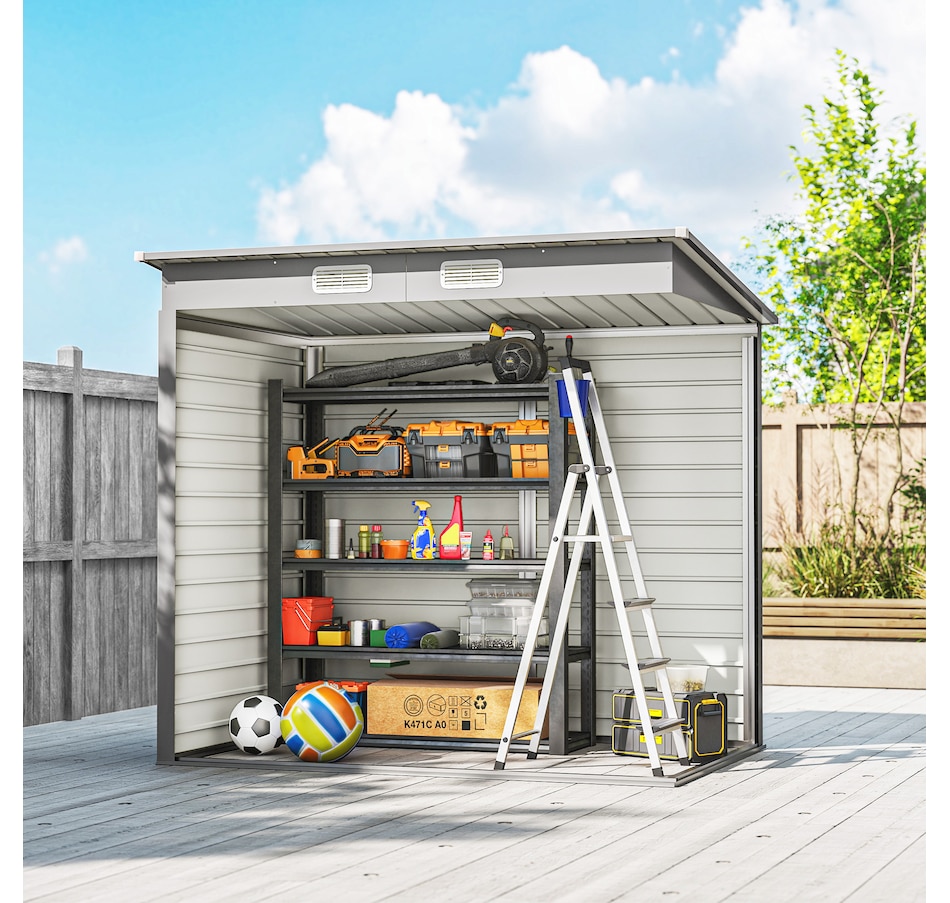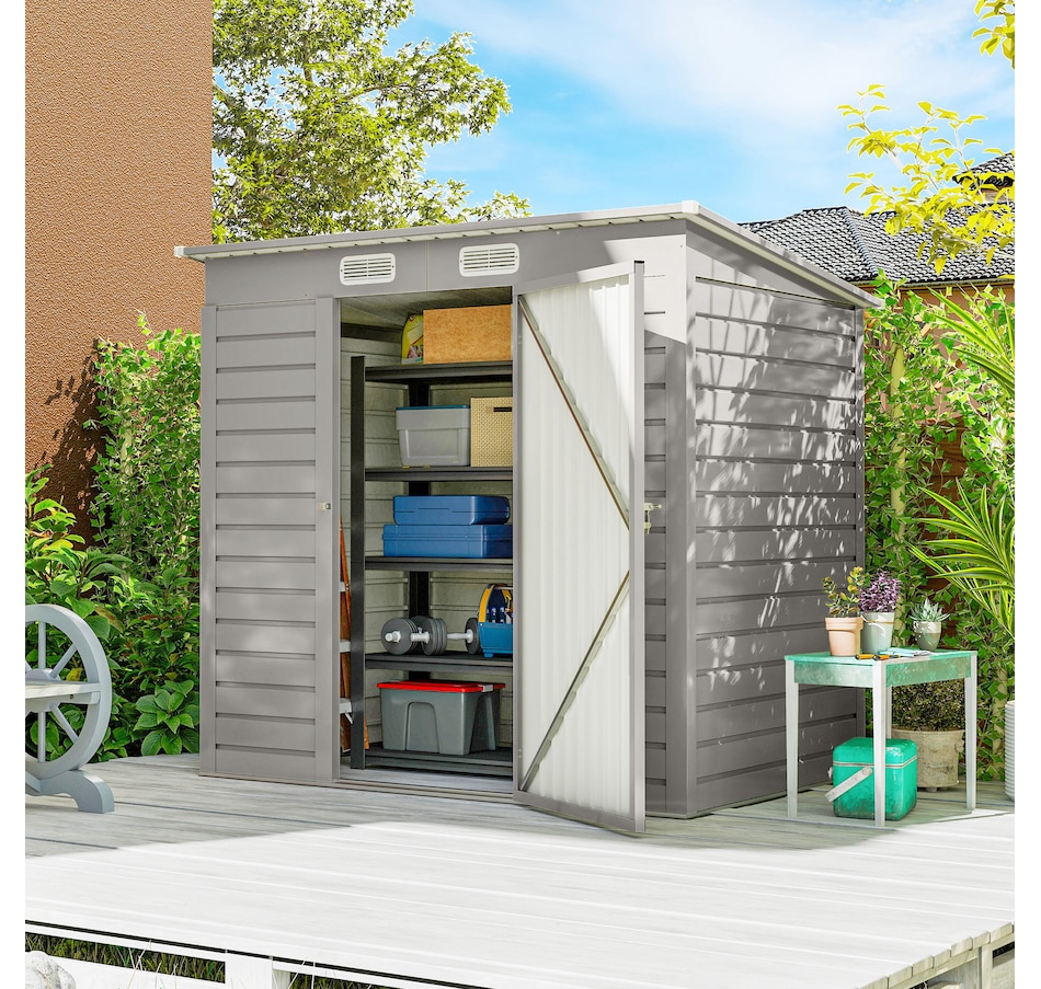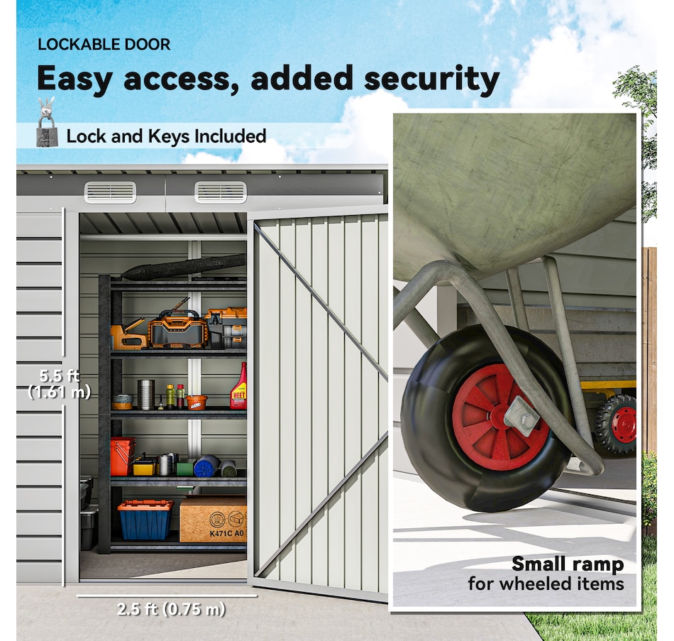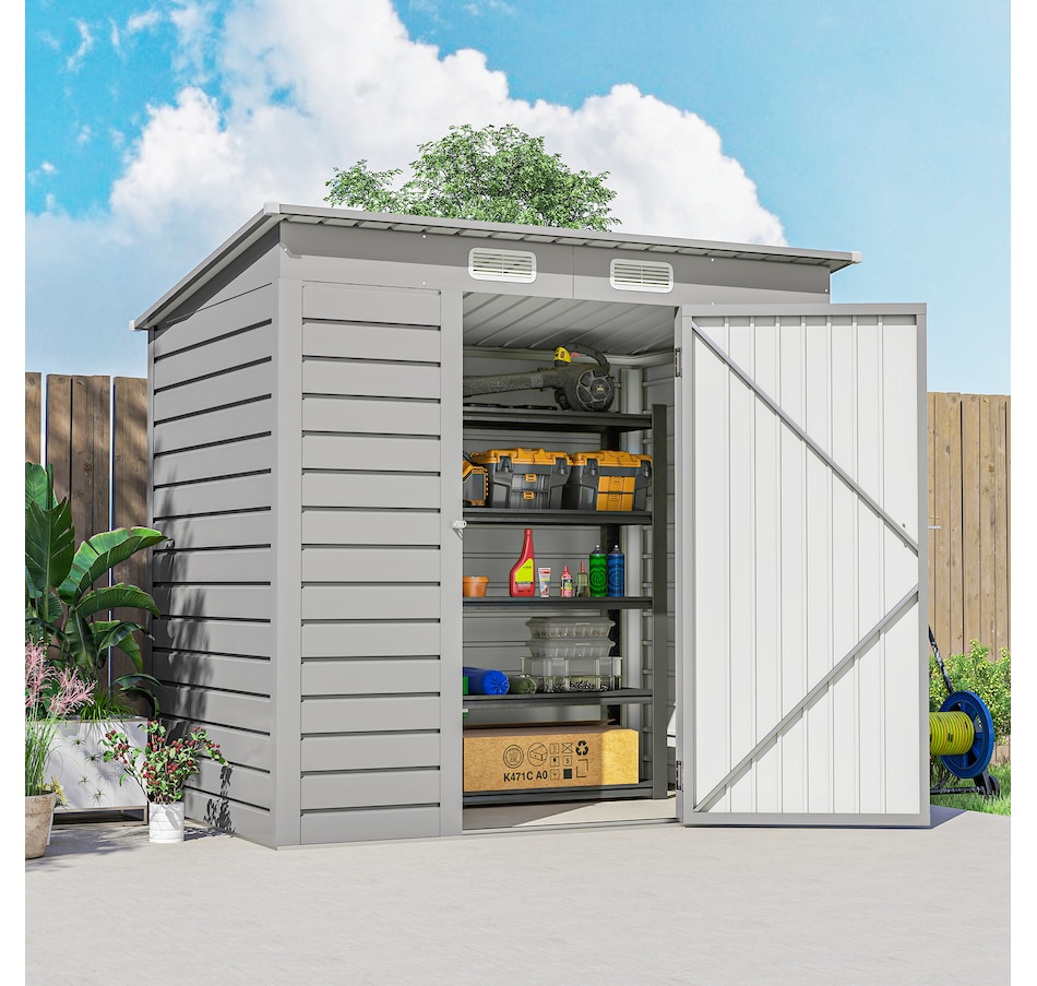 Easily add storage space and security when you use a garden tool storage shed by Outsunny. Keep expensive equipment outside and out of harm's way with its waterproofed galvanized roof. Mitigate moisture and musty odors with ventilating windows. The door has a latch to keep tools safe. Feel free to store garden tools, pool supplies and lawn equipment. Get out, get productive and get Outsunny.