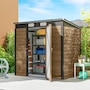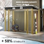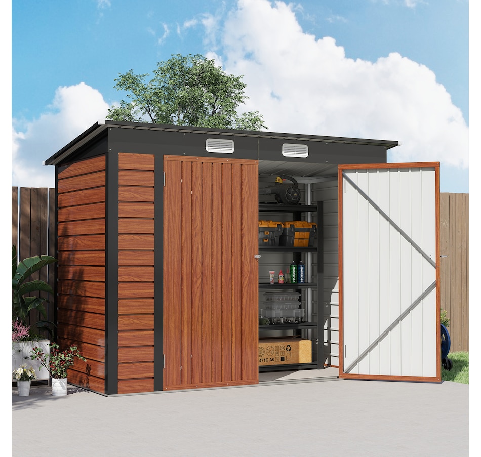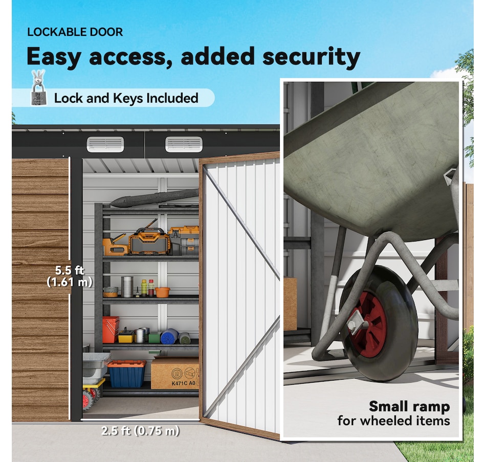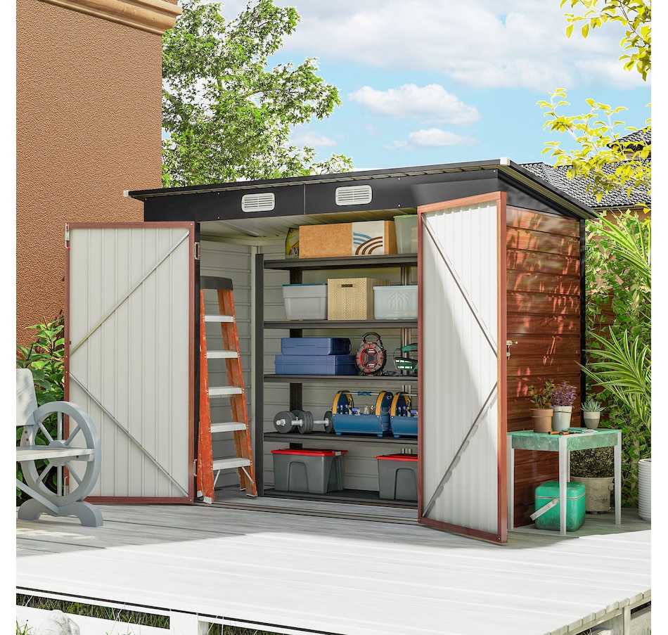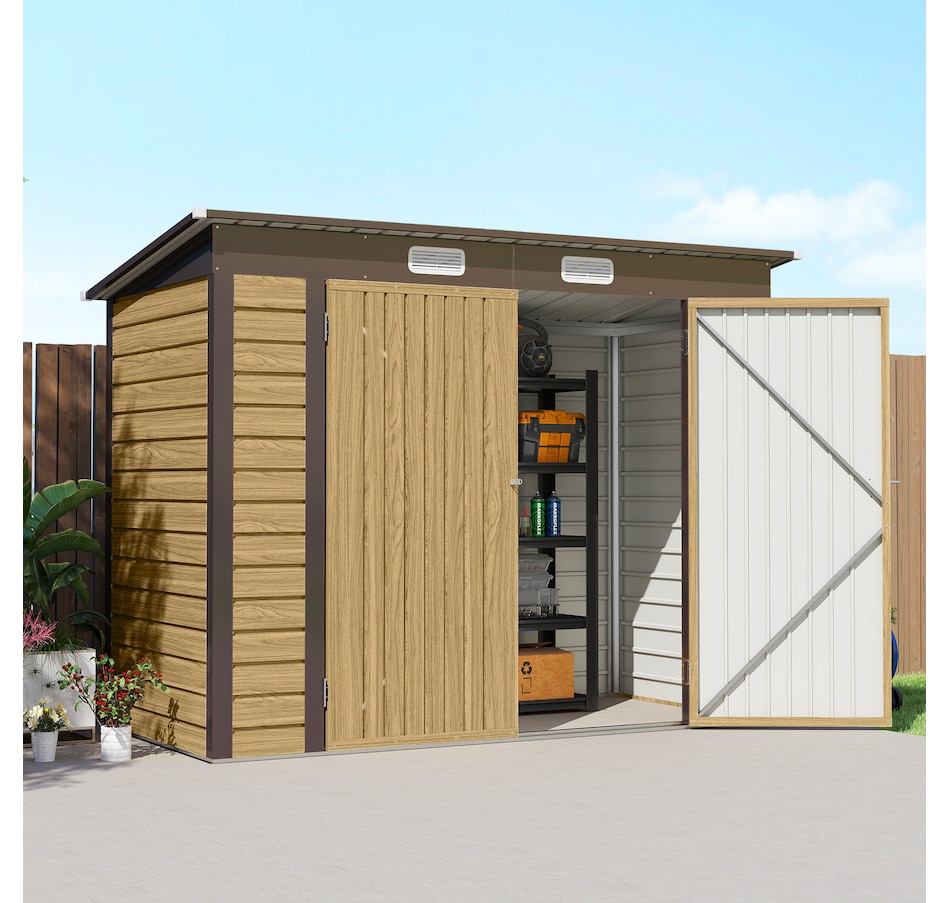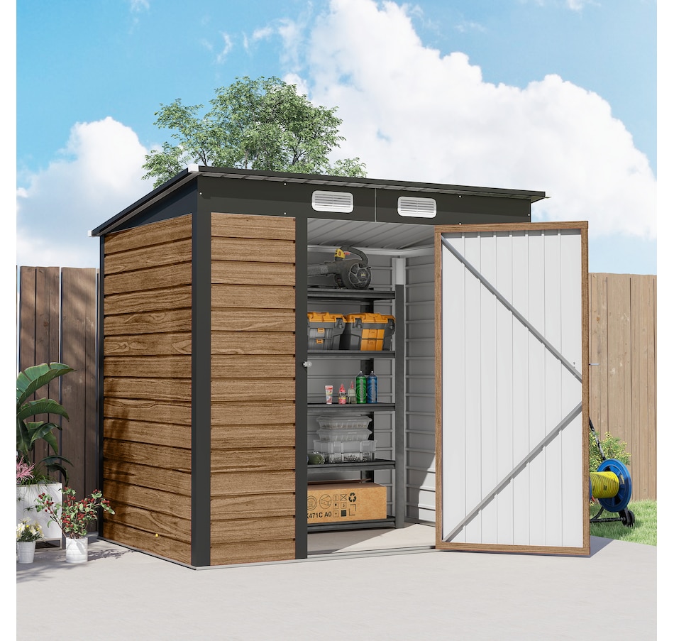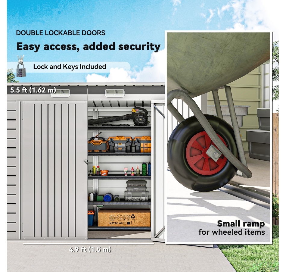Easily add storage space and security when you use a garden tool storage shed by Outsunny. Keep expensive equipment outside and out of harm's way with its waterproofed galvanized roof. Mitigate moisture and musty odors with ventilating windows. The door has a latch to keep tools safe. Feel free to store garden tools, pool supplies and lawn equipment. Get out, get productive and get Outsunny.