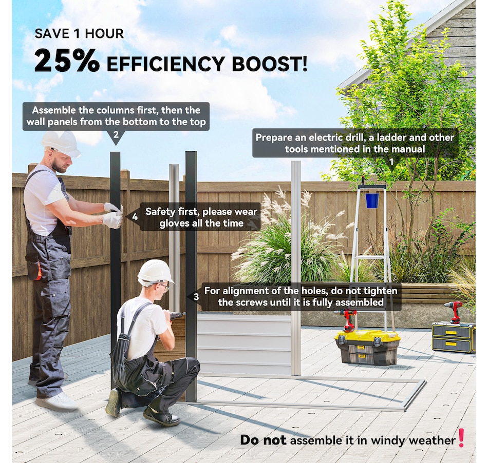 ● Gloves includes for installation, 2-3 people recommended to set up;