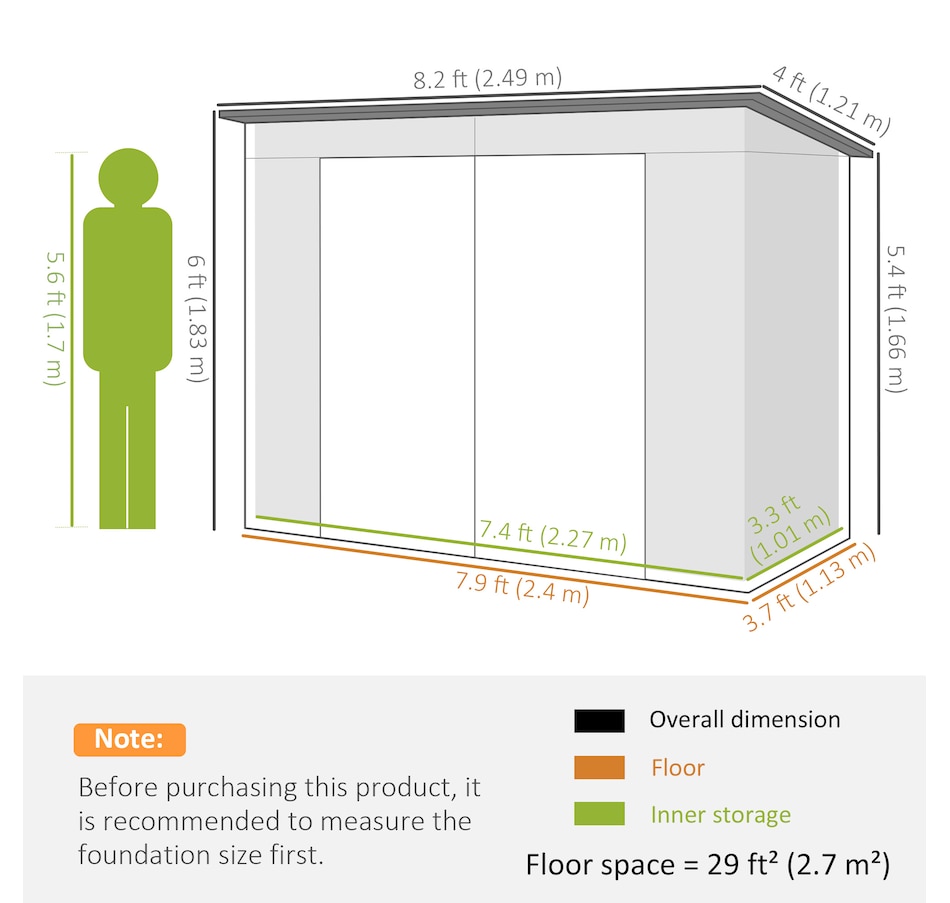 ● Bottom Area: 94.5" L x 44.5" W (240 x 113 cm), 29 ft² (2.7 m²);