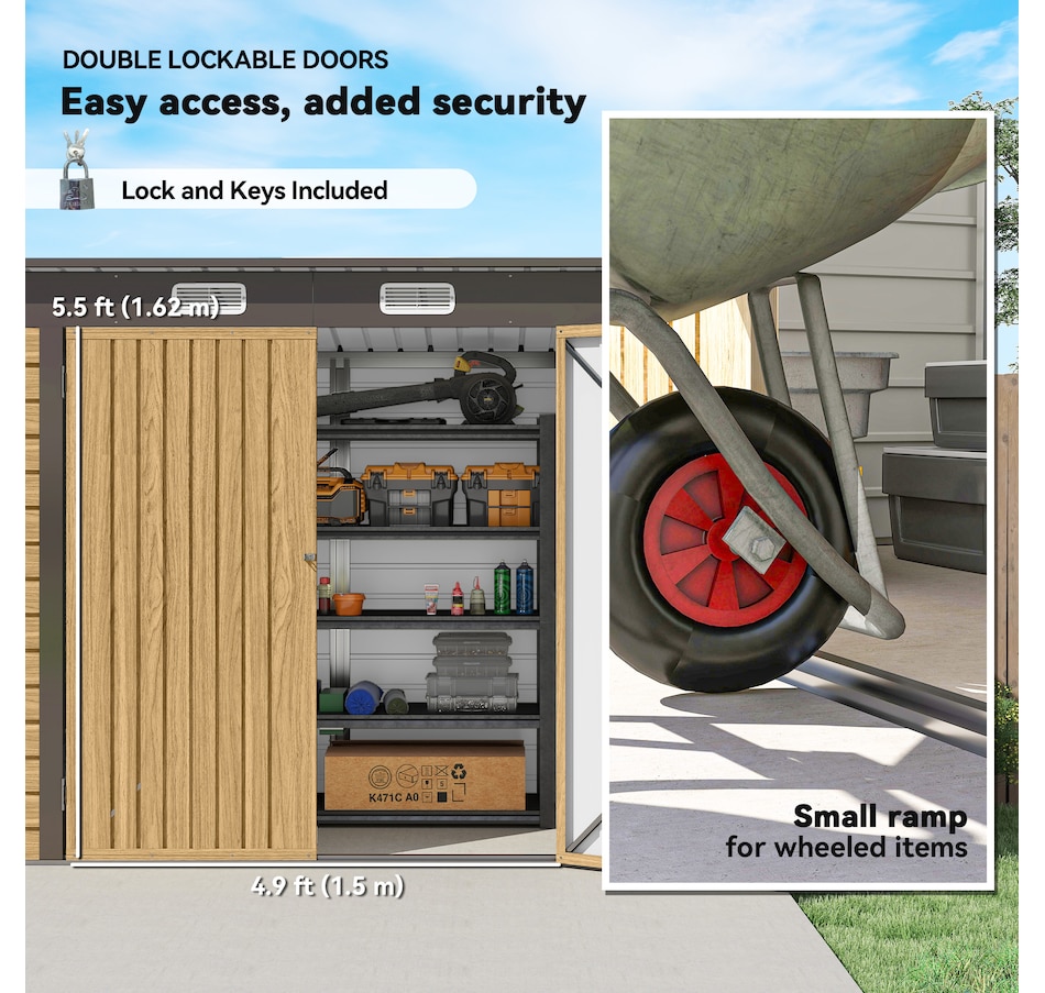 ● Metal bike shed suitable for plenty of outdoor tools, equipment and outerwear;
