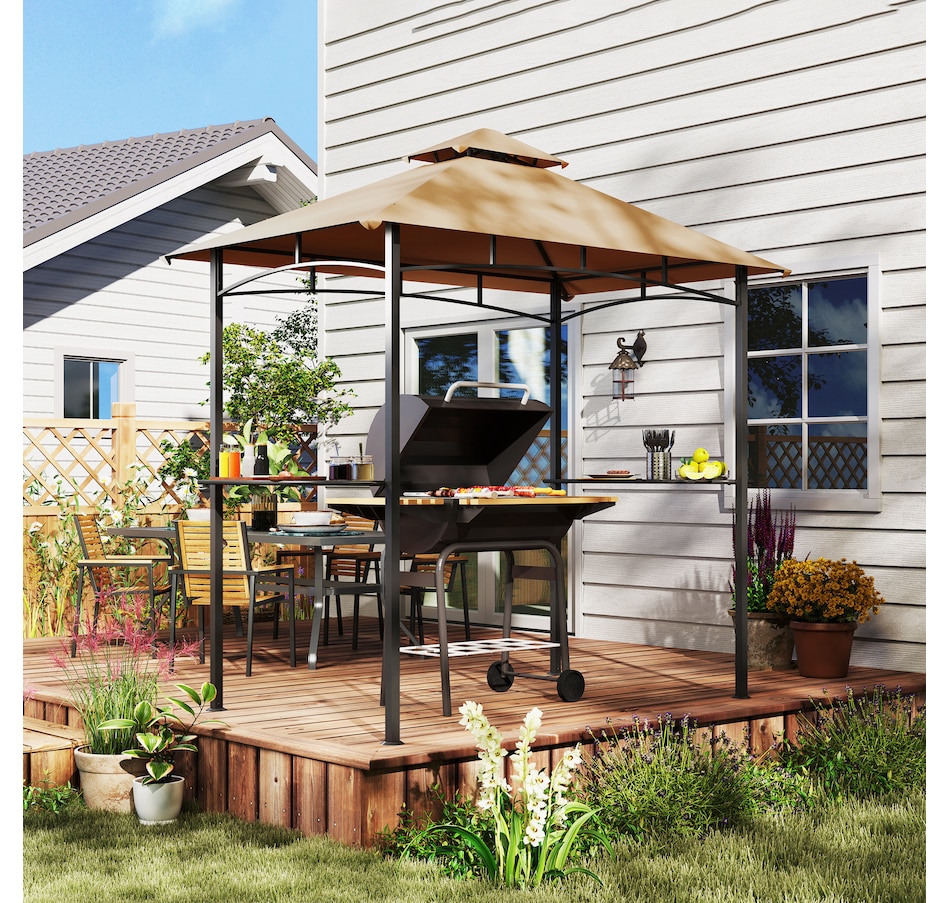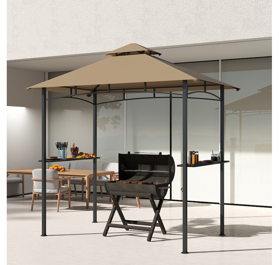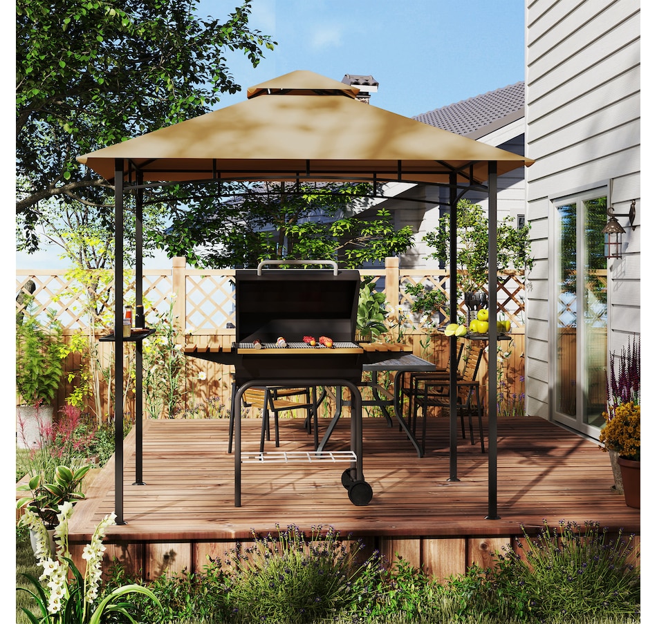 8' x 5' BBQ Grill Gazebo Tent for Outdoor Sun Shade, Khaki
