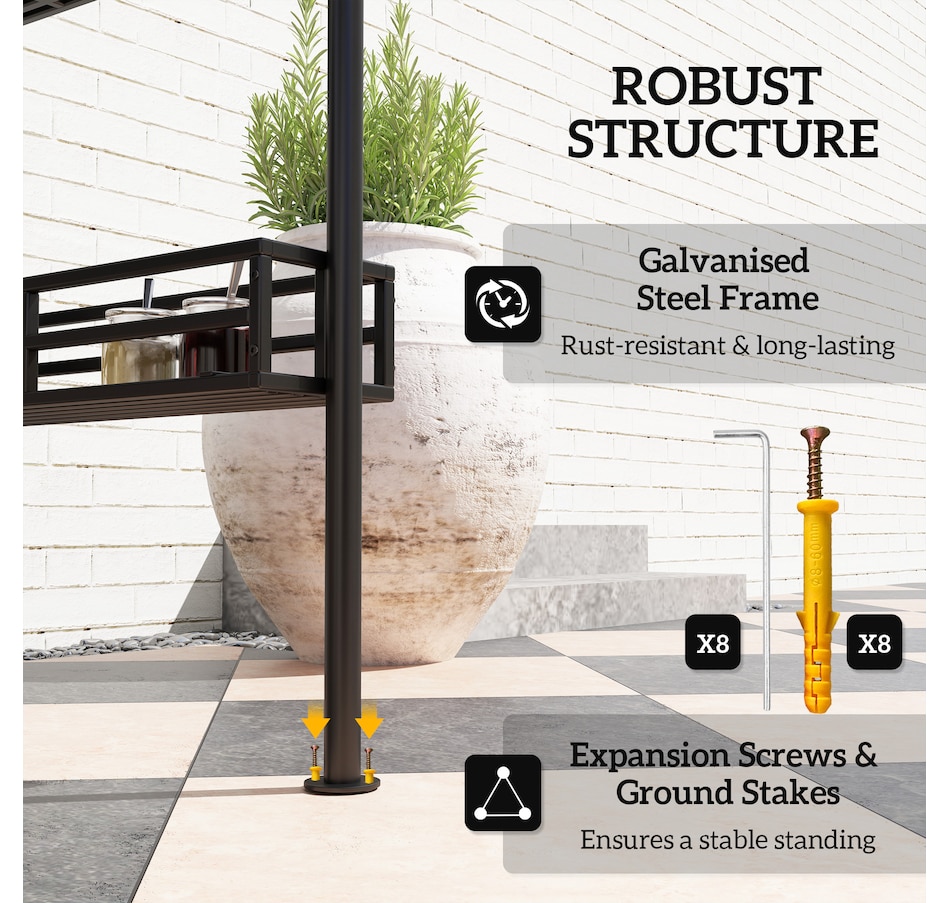 ● Powder-coated metal frame, ground stakes and screws for secure assembly;