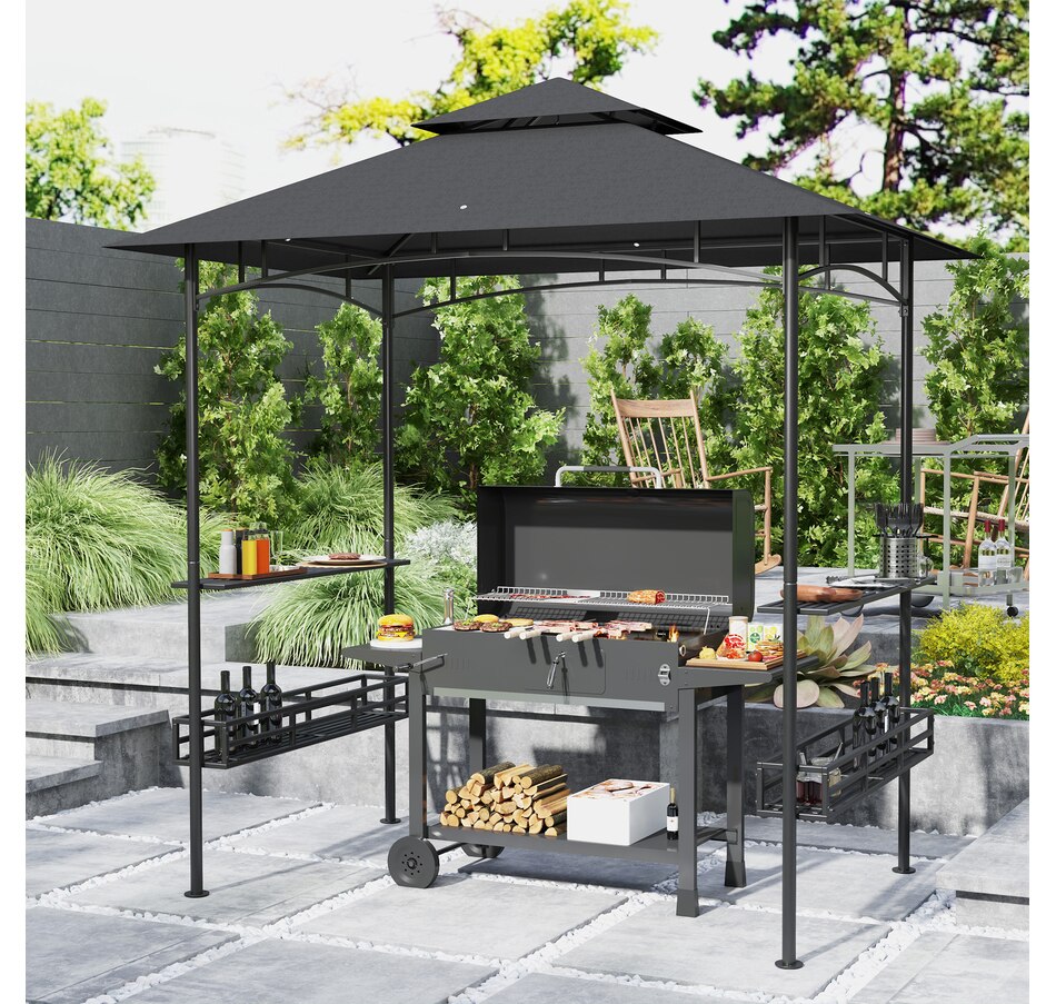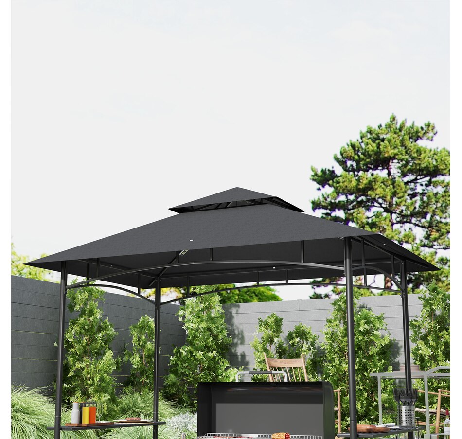 8' x 5' Grill Gazebo, 2-Tier Outdoor BBQ Gazebo, Dark Grey