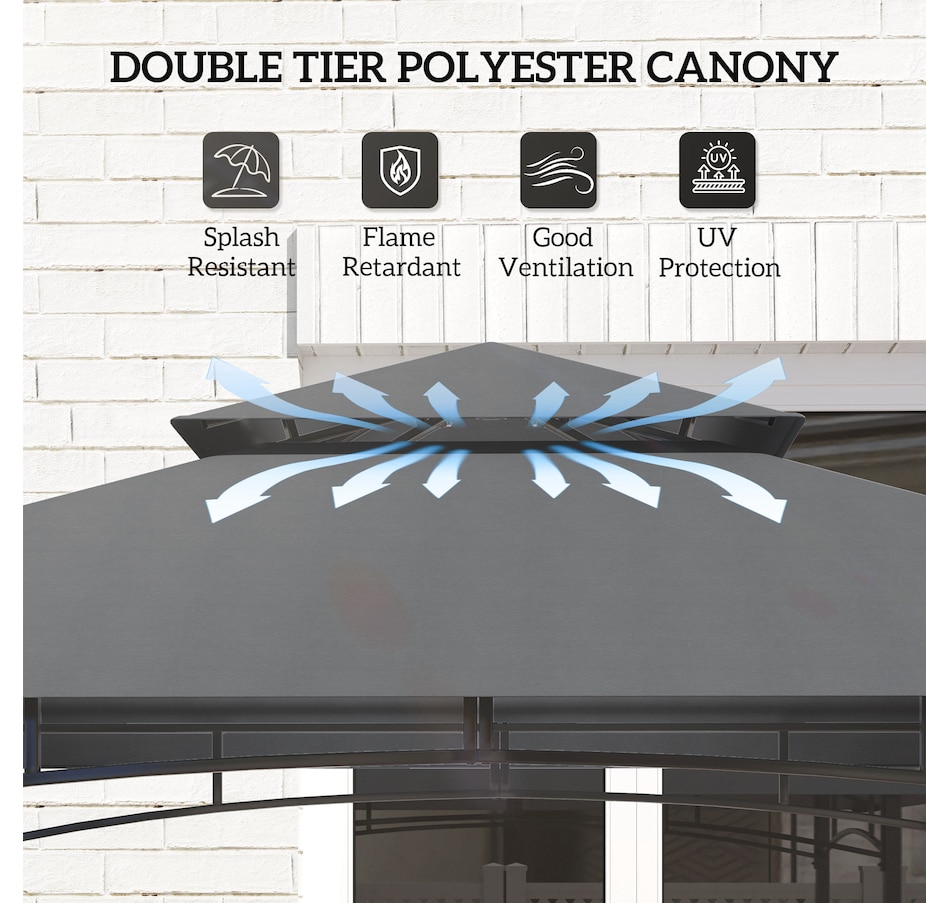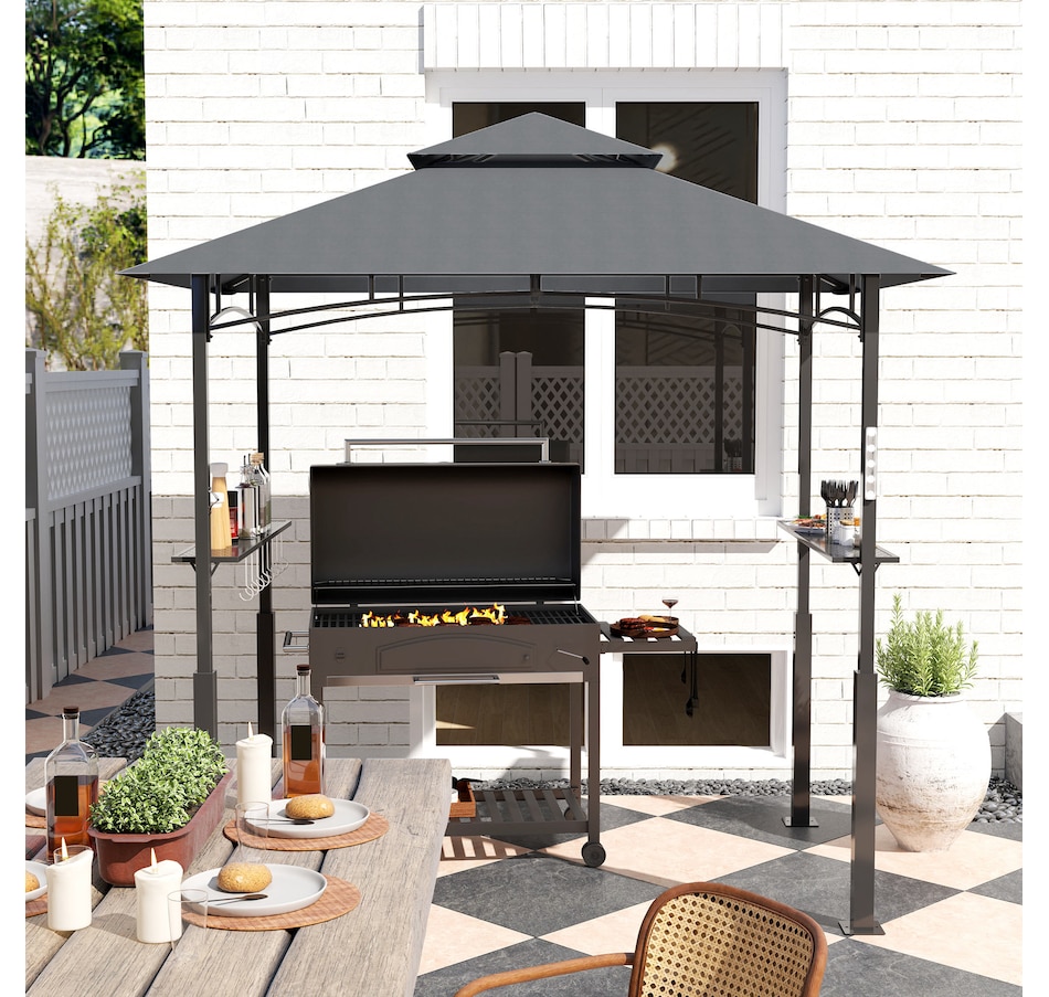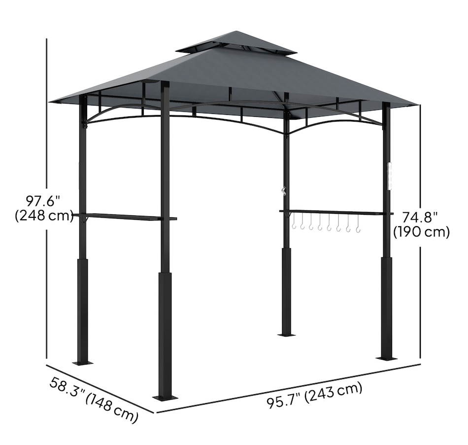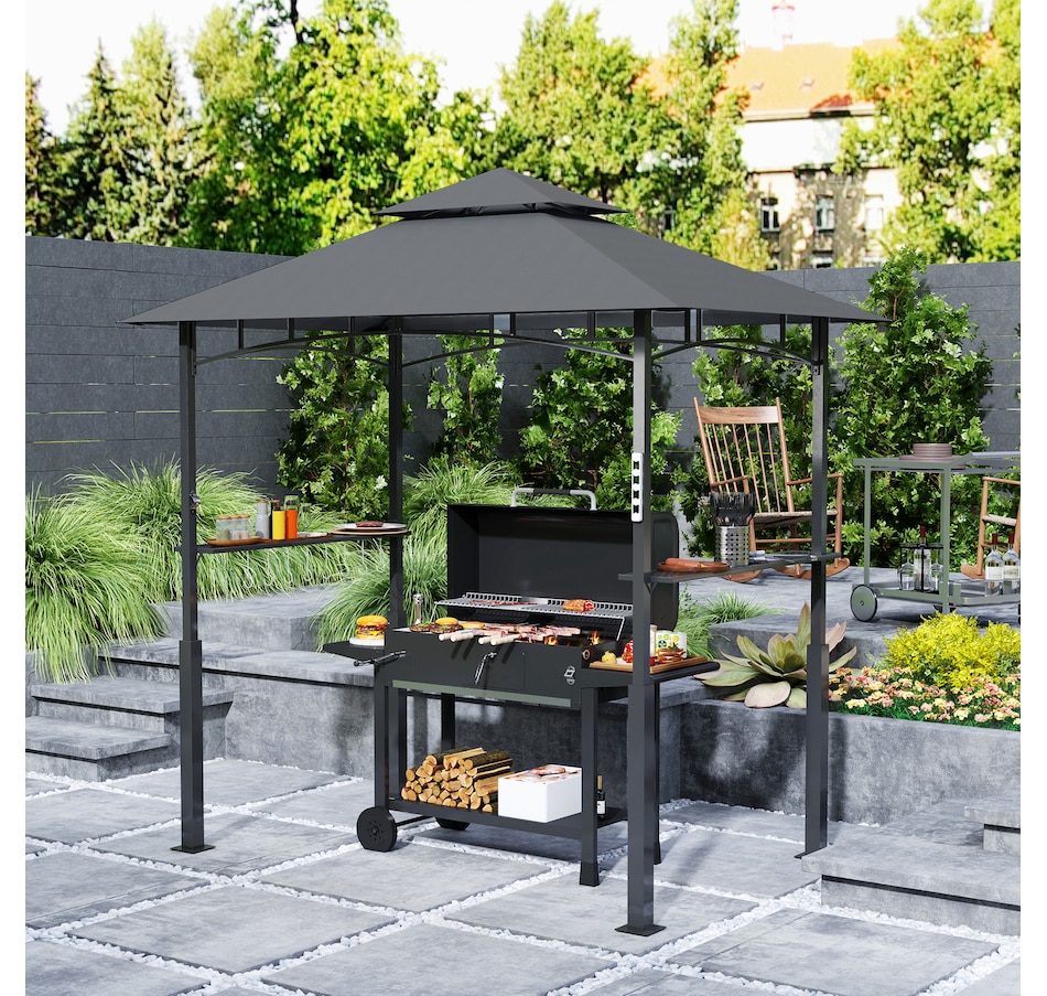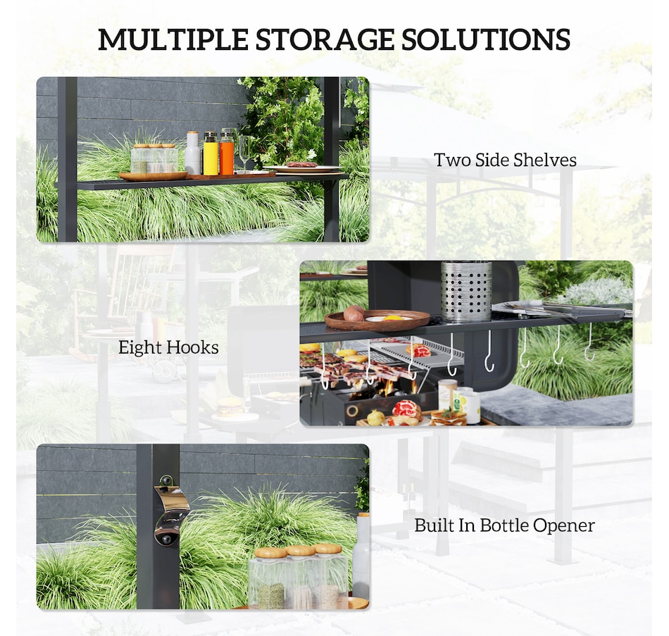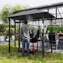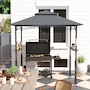 Transformez votre expérience de grillade avec le Gazebo BBQ Outsunny ! Son double toit améliore la circulation de l'air et empêche l'accumulation de fumée, tandis que l'auvent ignifuge, anti-UV et résistant aux éclaboussures assure la sécurité et le confort. Des étagères latérales et des crochets pratiques permettent de garder l'essentiel à portée de main, avec en prime un décapsuleur très pratique. Illuminez vos barbecues en soirée grâce aux lampes LED magnétiques incluses (piles non incluses).