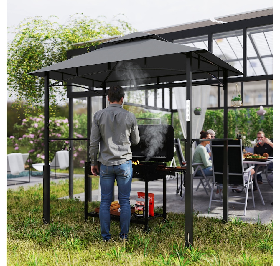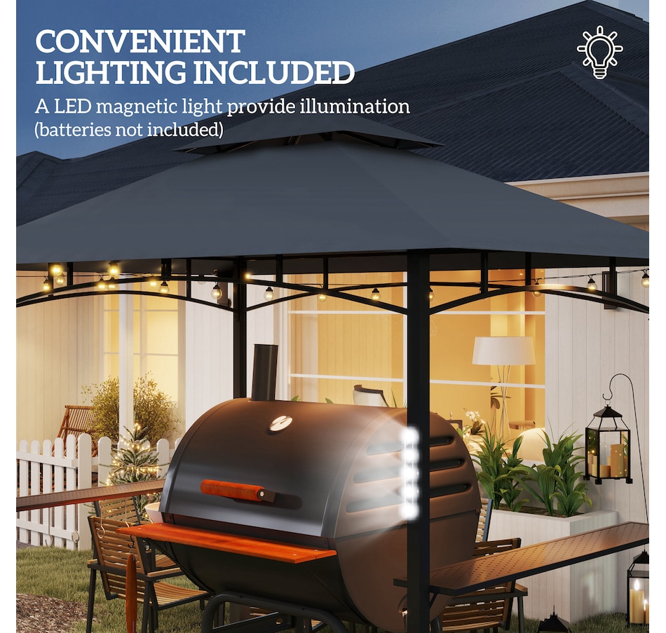 8' x 5' Grill Gazebo, BBQ Shelter with LED Light, Dark Grey