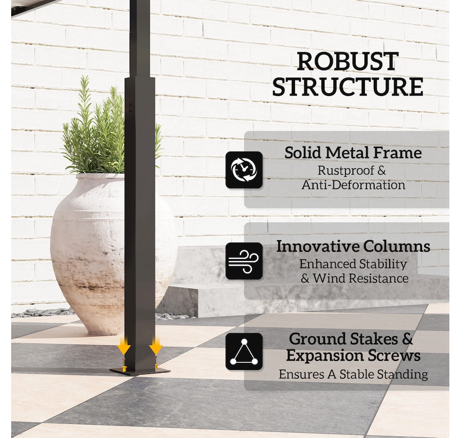 ● Design à colonnes avec clous de fixation pour une meilleure stabilité et résistance au vent.