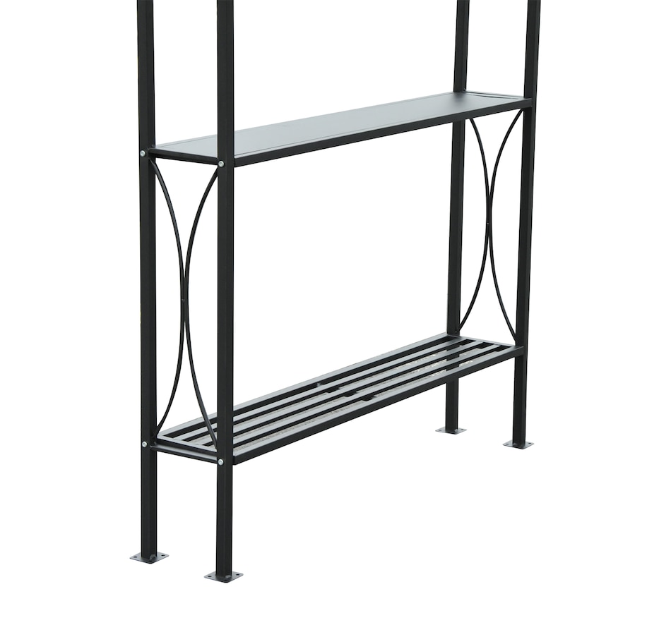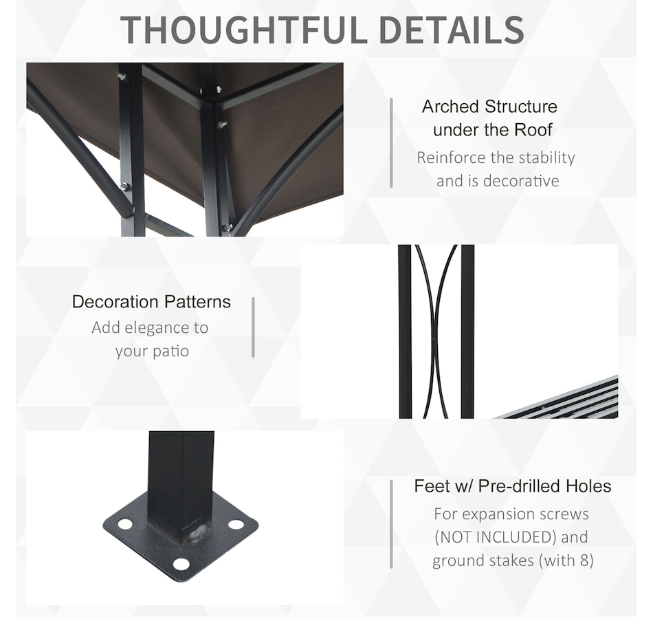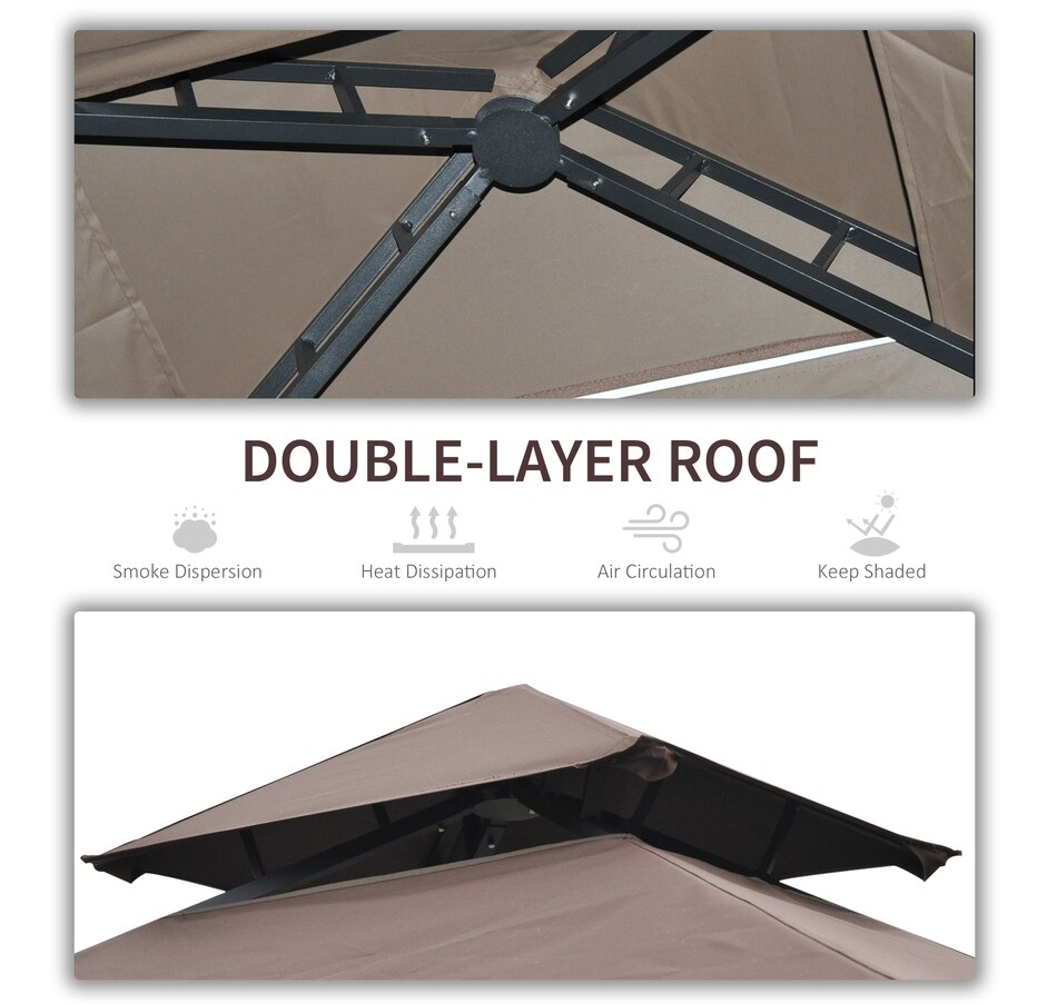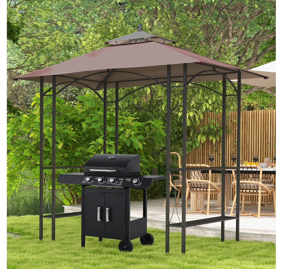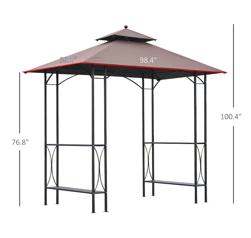 Protect your grill from the weather with this Curved Grill Shelter. The powder-coated steel frame is built to be sturdy, and the polyester fabric on the grill canopy resists fading and flames. The outdoor grill shelter includes 2 sides of 2-tires of iron counters provide plenty of space. Make it convenient to grill in virtually any kind of weather with this grill canopy.