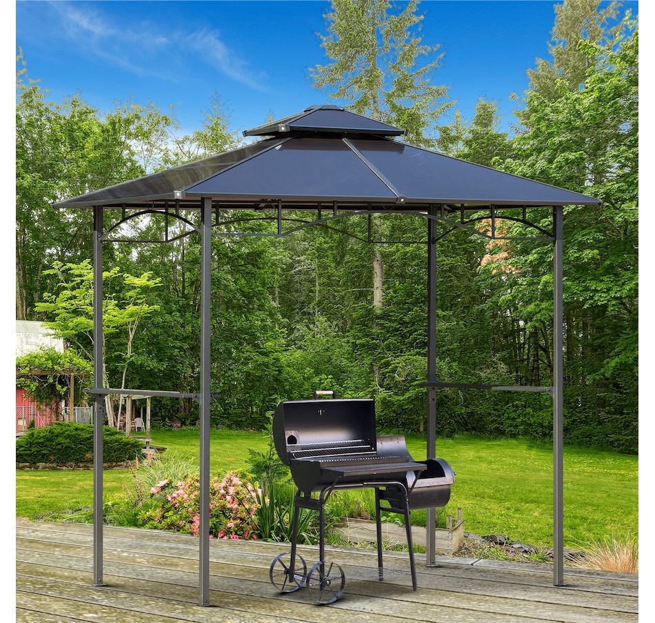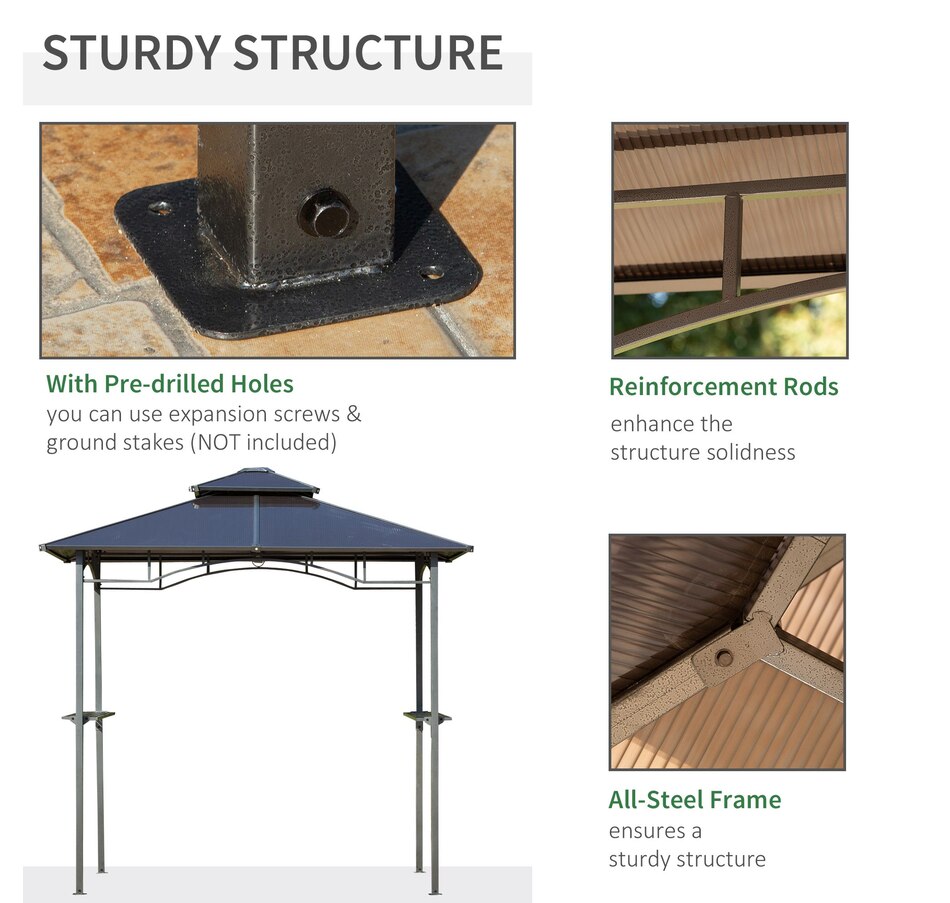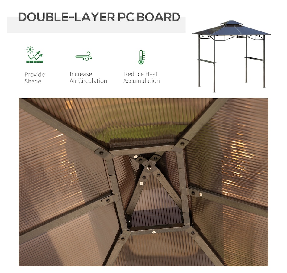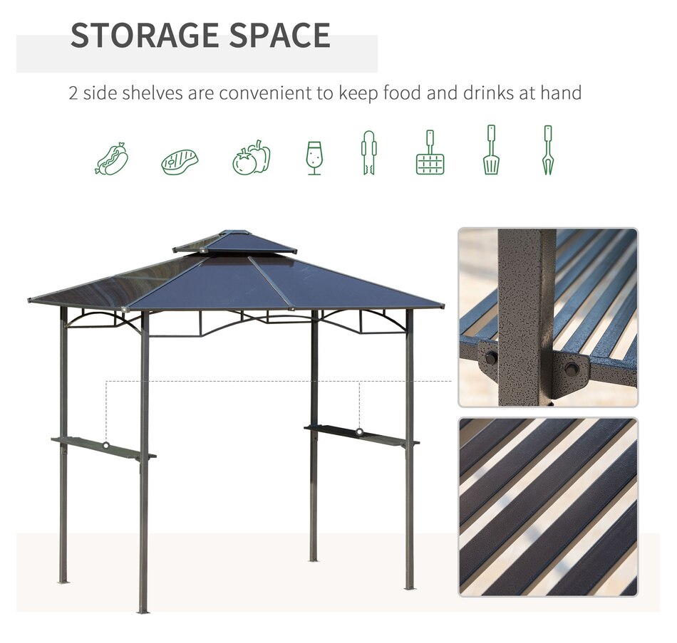 When you want to barbecue with your friends, do you ever worry about the rain or the strong sun? Choose this gazebo for grill, you can barbecue anytime you want. The roof of the BBQ canopy gazebo has UV protection and is rain resistant. Side shelves are convenient for you to place food and drinks. Provides a comfortable environment and the delicious food, you just need to enjoy your time. The hard top grill gazebo is worth your choice.