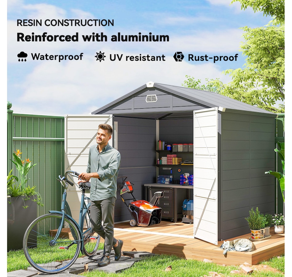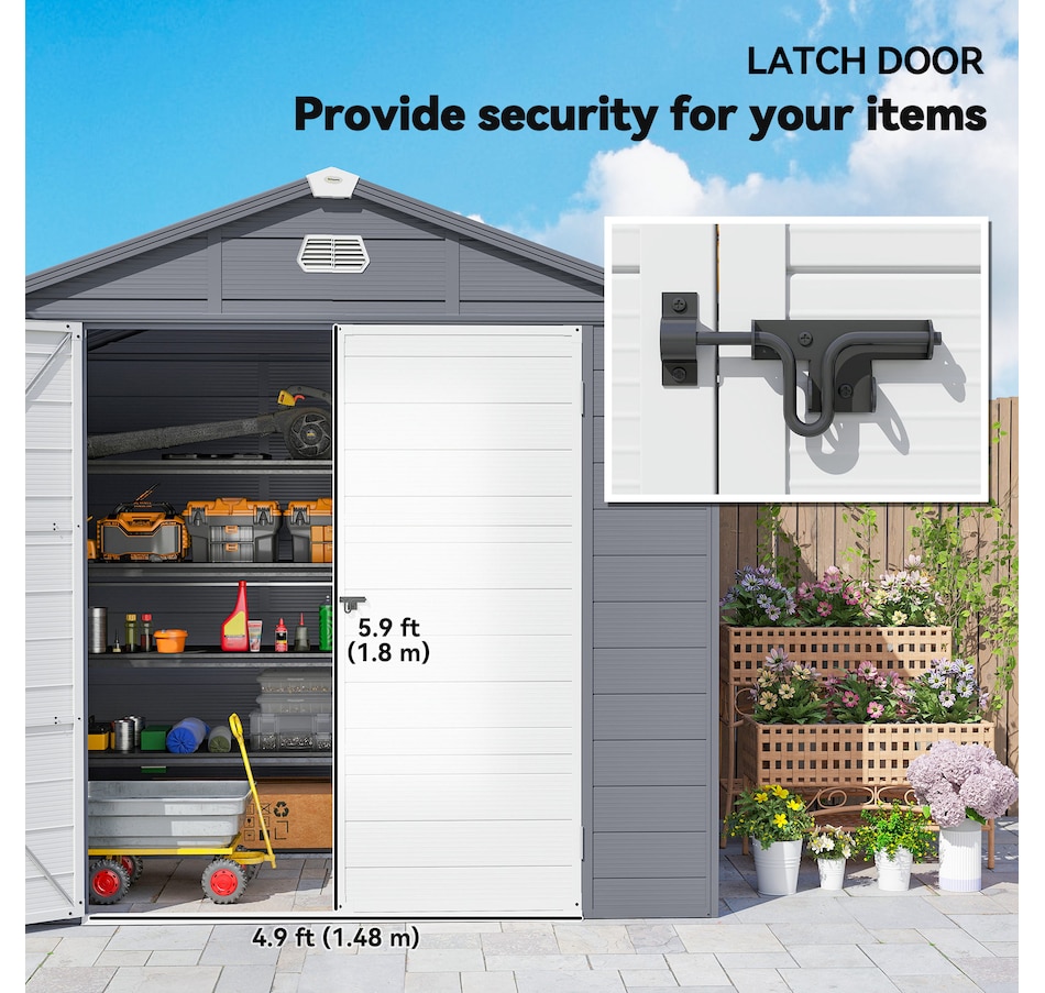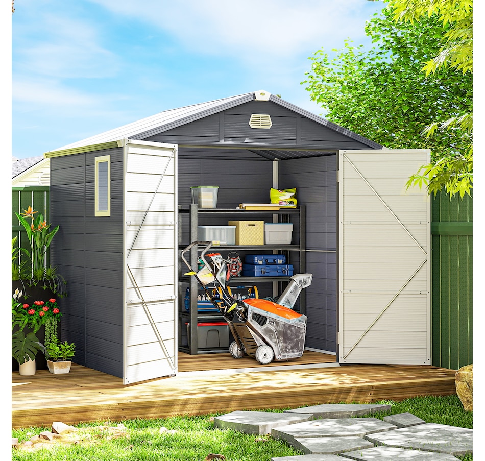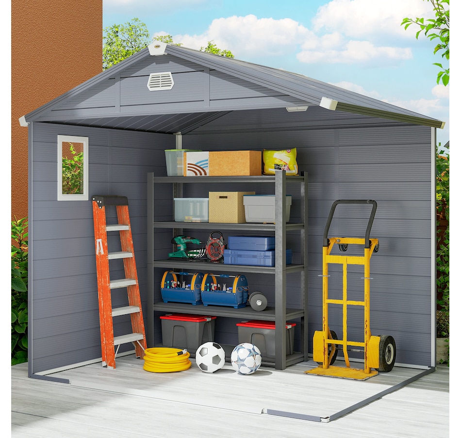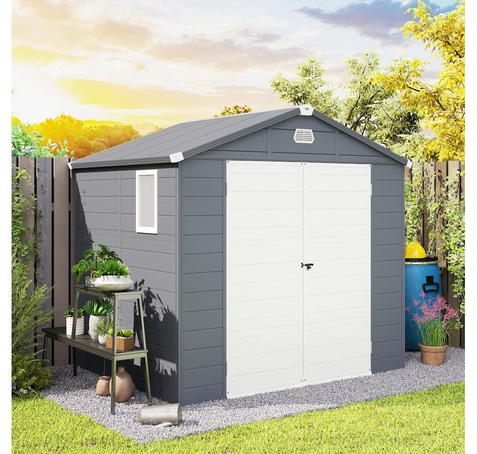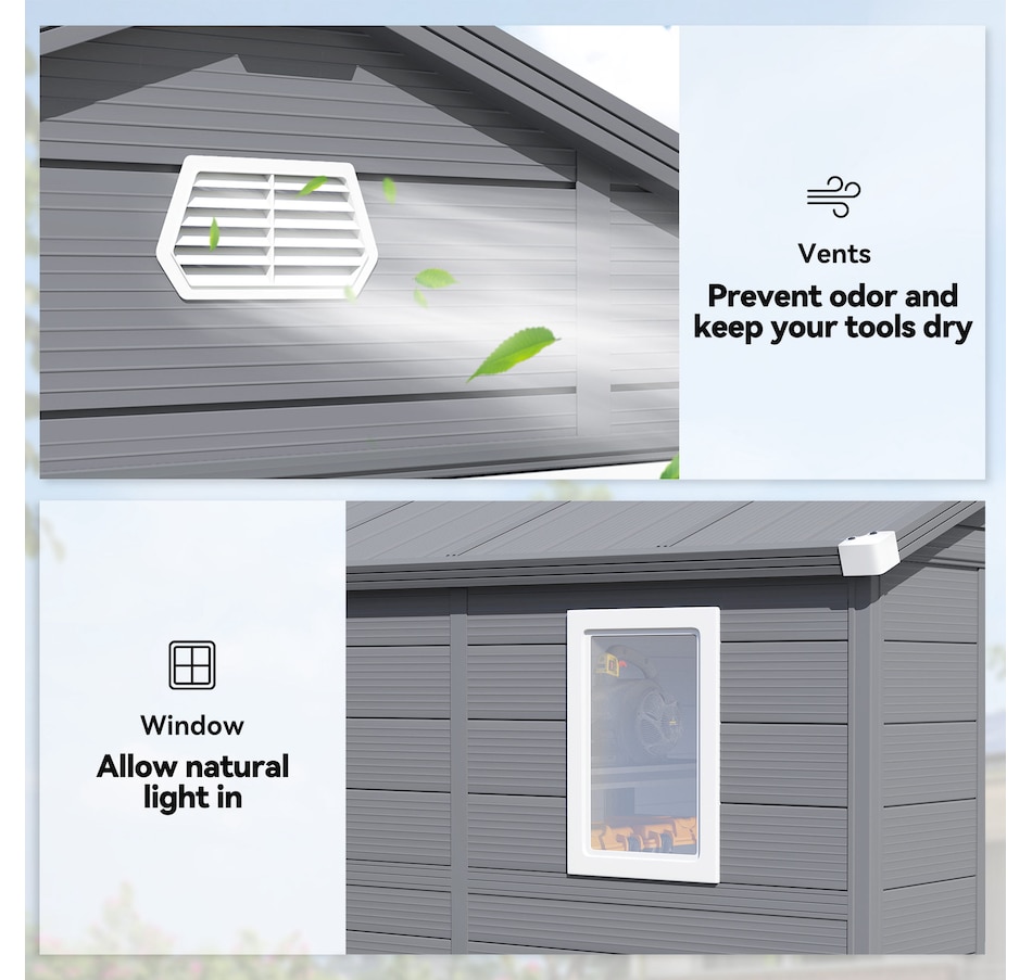 8' x 6' Plastic Garden Storage Shed with Air Vents, Light Grey