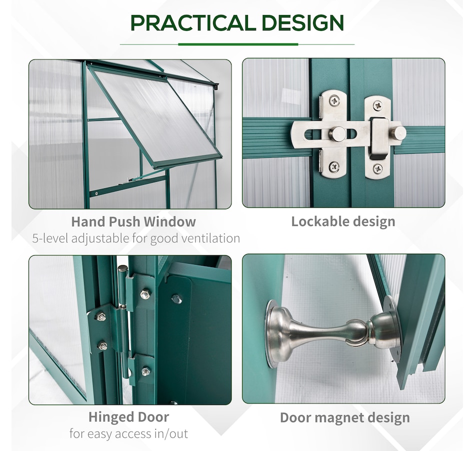 ● Note: The greenhouse is not designed to withstand extreme weather such as heavy snow.