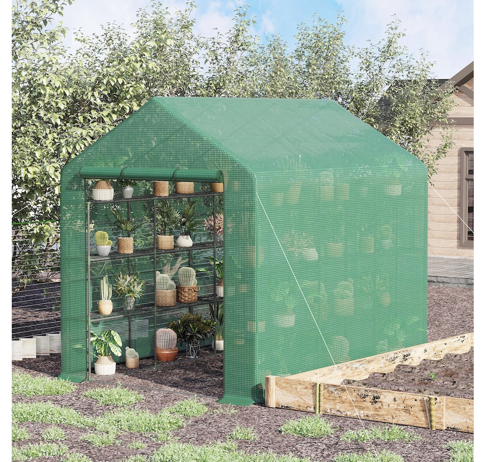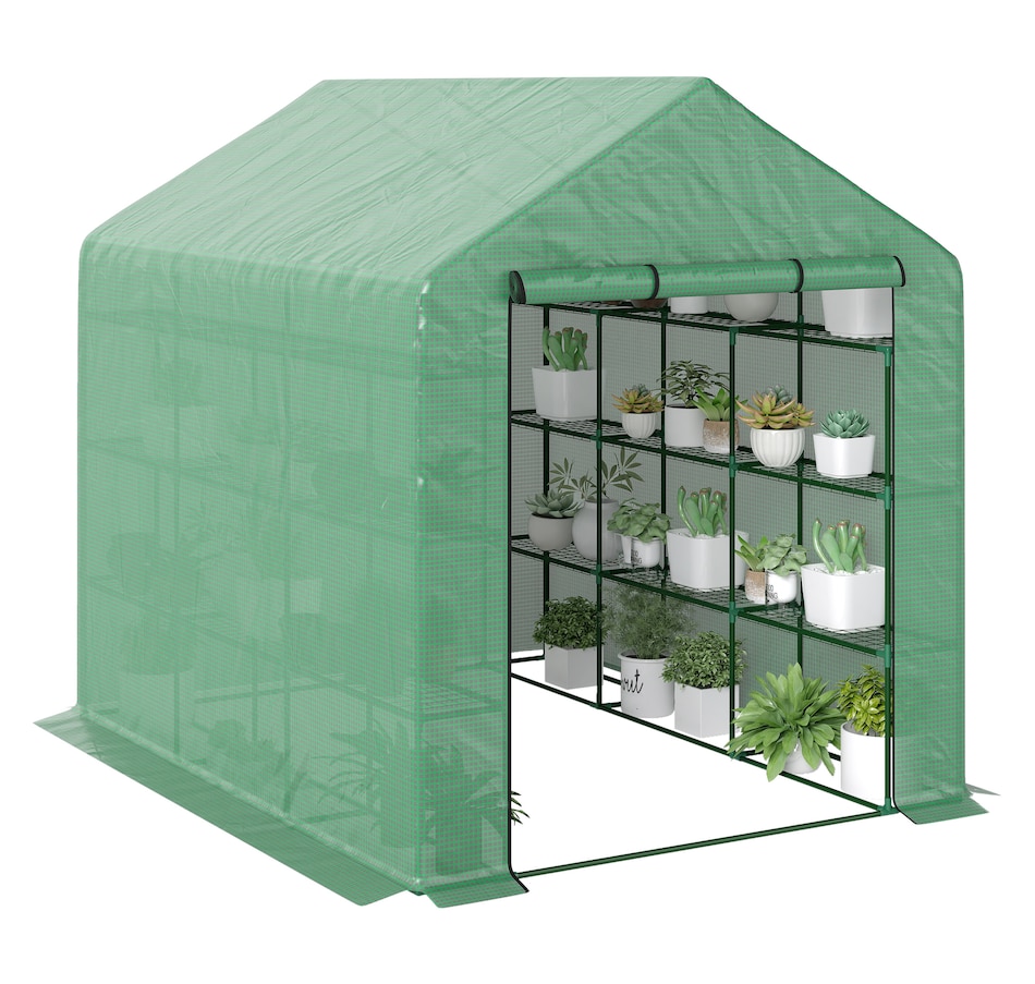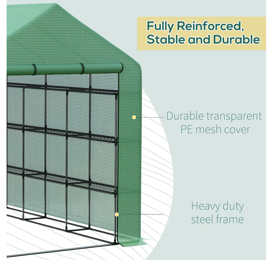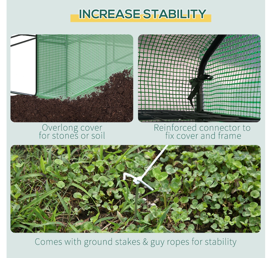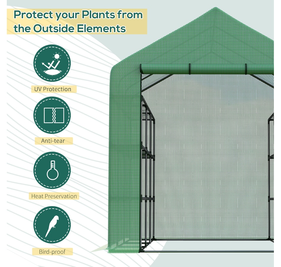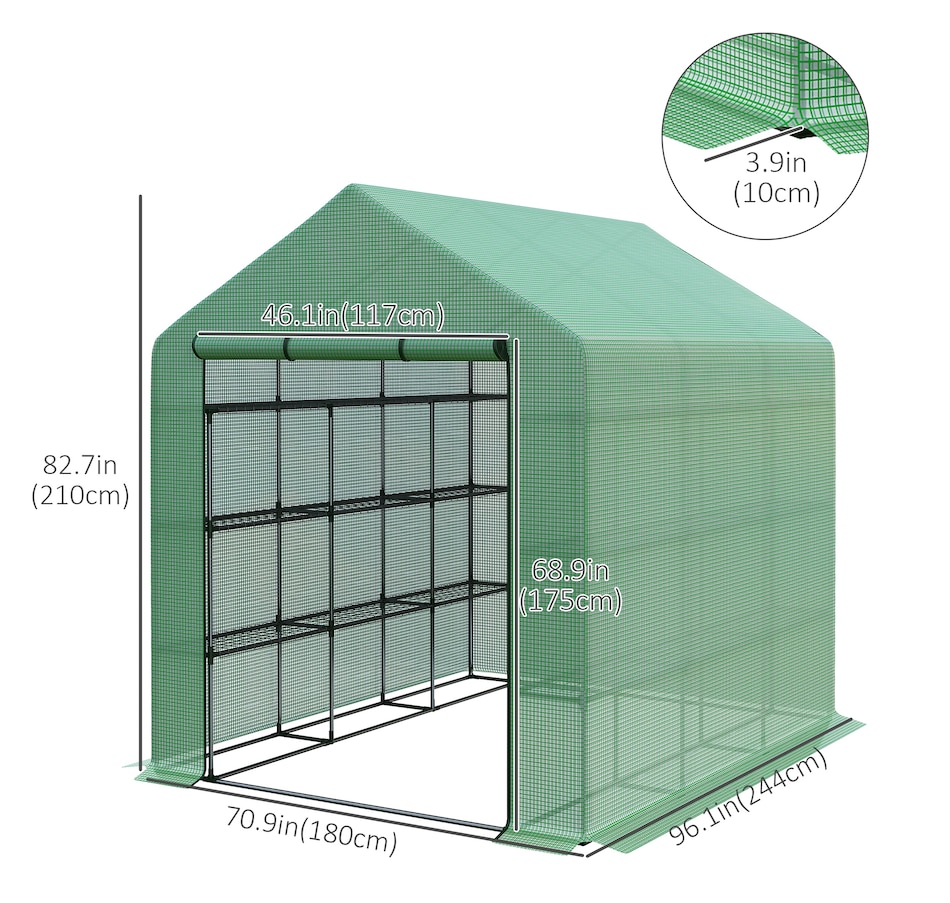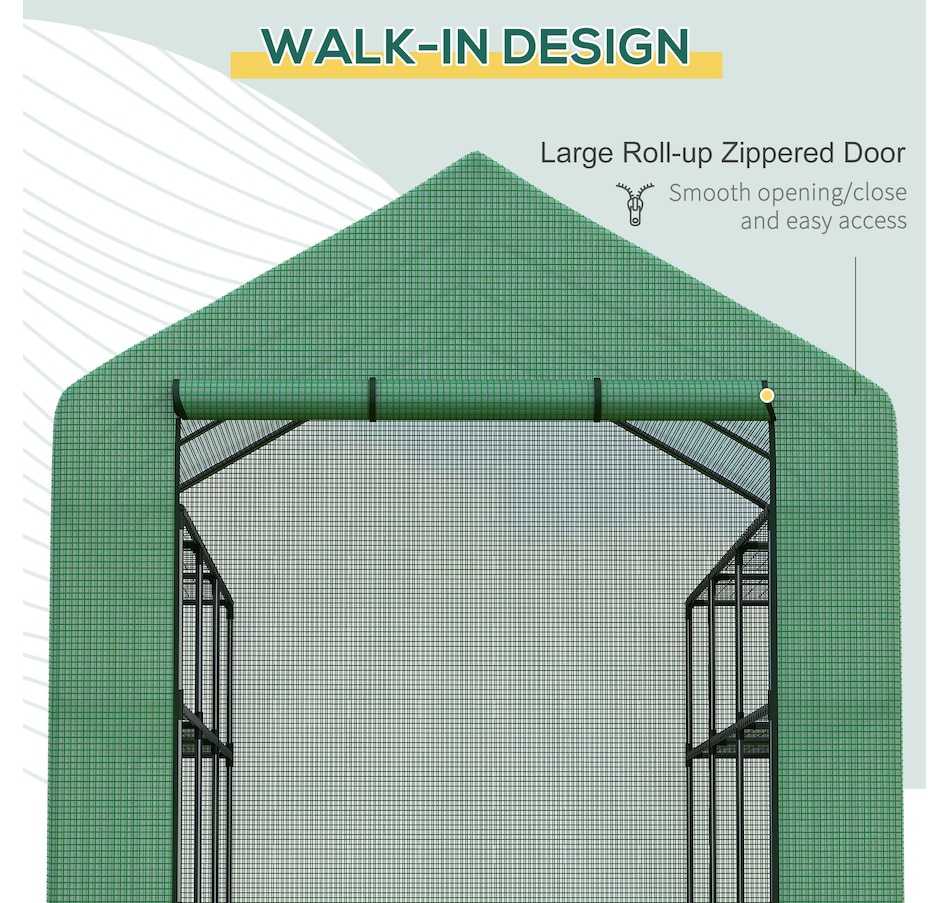 Are you a home gardening enthusiast looking for a way to stay in the soil year-round? This Outsunny portable greenhouse walk-in gardening greenhouse offers the vital protection for your plants. The plastic mesh cloth cover of the green house outdoor keeps your crops at the perfect temperature and is reinforced by a sturdy powder-coated steel tube frame. This small greenhouse perfect solution for the true gardener to keep their plants healthy throughout the entire year.Features: