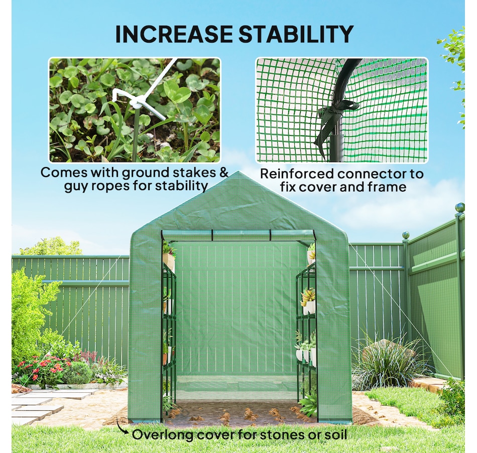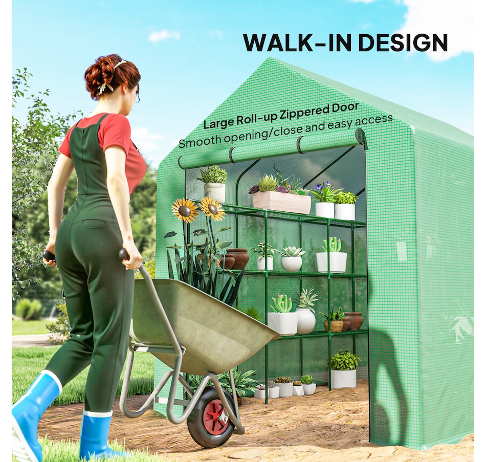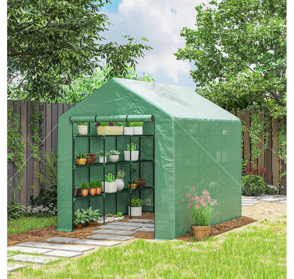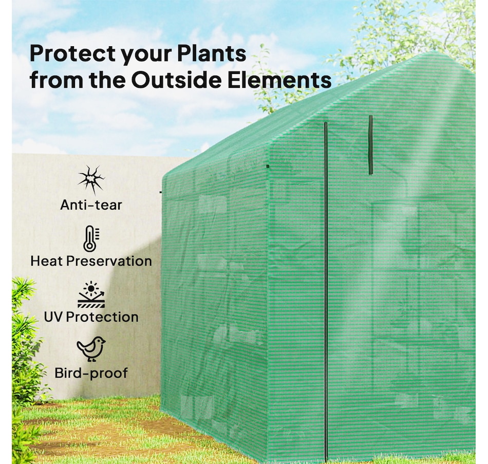 Are you a home gardening enthusiast looking for a way to stay in the soil year-round? This Outsunny portable greenhouse walk-in gardening greenhouse offers the vital protection for your plants. The plastic mesh cover of the green house outdoor keeps your crops at the perfect temperature and is reinforced by a sturdy powder-coated steel tube frame. This small greenhouse perfect solution for the true gardener to keep their plants healthy throughout the entire year.