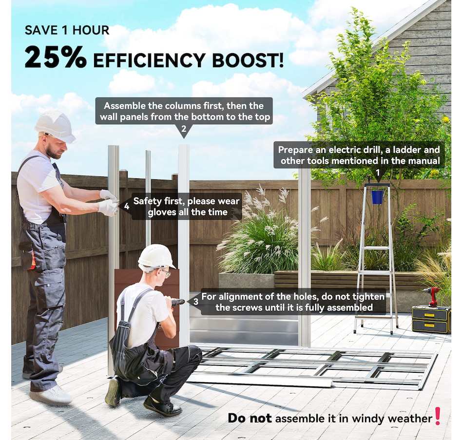 ● Functions as a tool shed, bike shed, generator shed, or lawn mower storage;