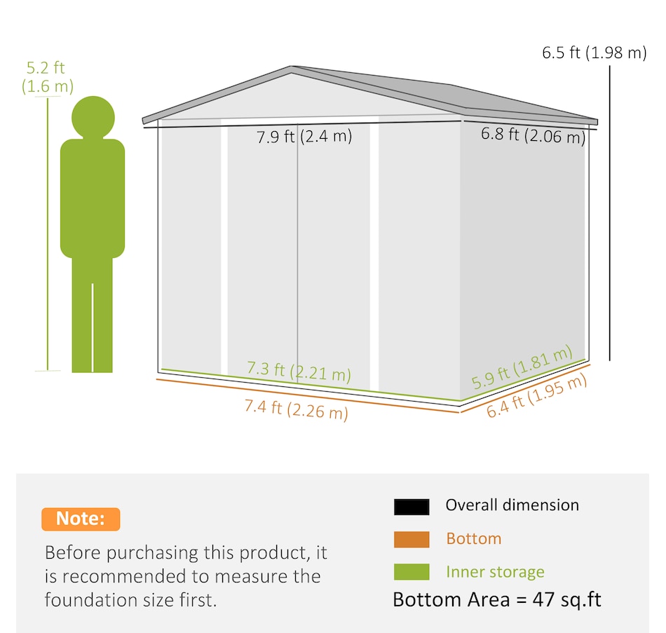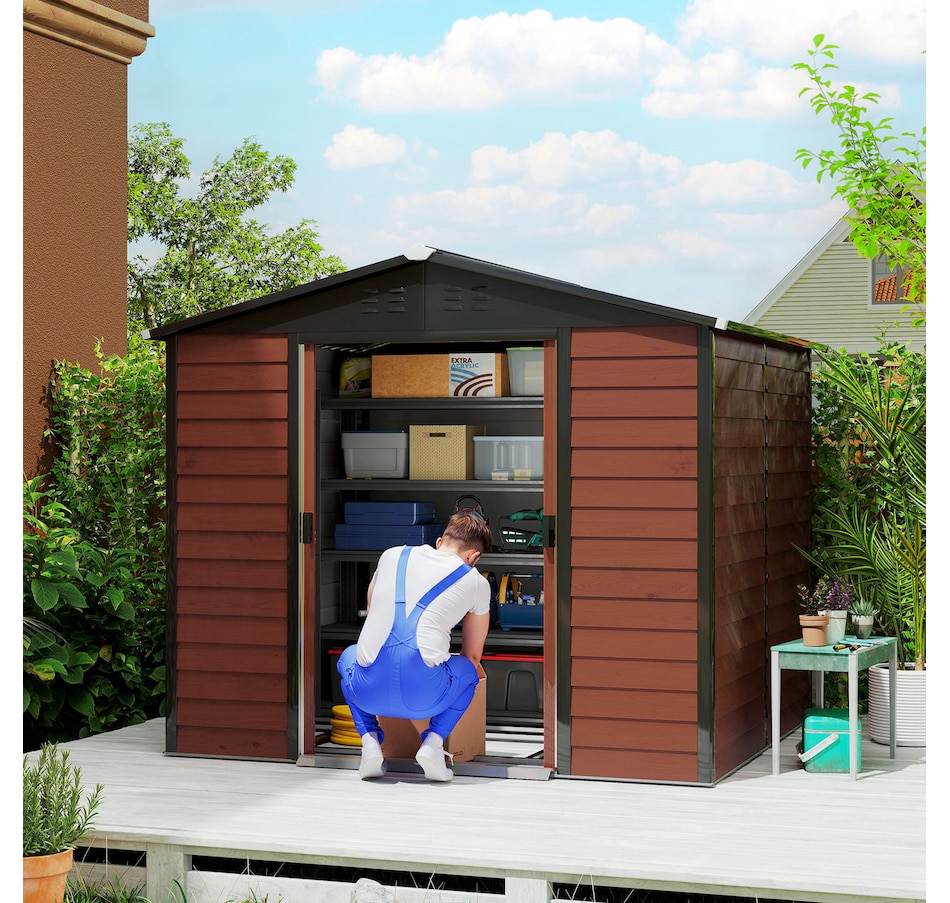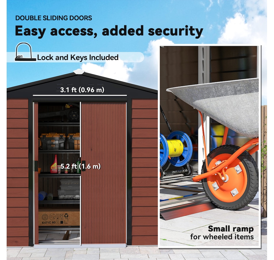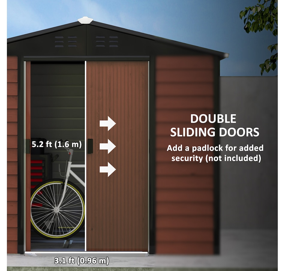 Easily add storage space and value to your property with an outdoor storage shed from Outsunny. Keep expensive equipment safe from harm with its waterproofed galvanized roof. Mitigate moisture and musty odours with ventilating windows. The door is equipped with a locking mechanism for added security. Roll out your lawnmower with ample space to spare and store shovels, seeds, soil, and rakes. Get outdoors, get productive, get Outsunny.Features: