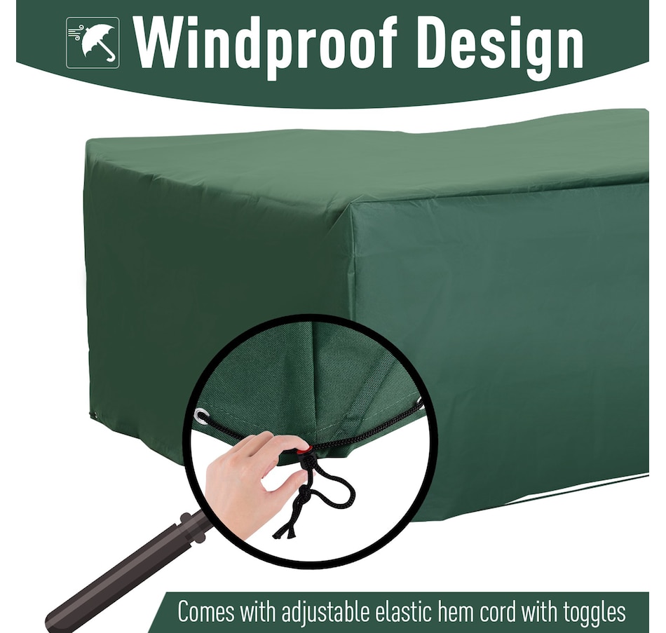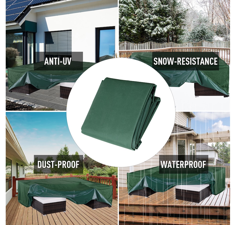 If you need to protect your outdoor furniture, our Outsunny outdoor sofa cover is a good choice. The material is lightweight yet tough, water-resistant and UV proofing. This keeps your furniture dry and looking good after years of use. The outdoor furniture cover is quick and easy to slip on and off your furniture, with an easy-to-use drawstring that cinches it down. This furniture cover is designed for mostly medium size outdoor furniture sofa sets as well as other furniture as well.