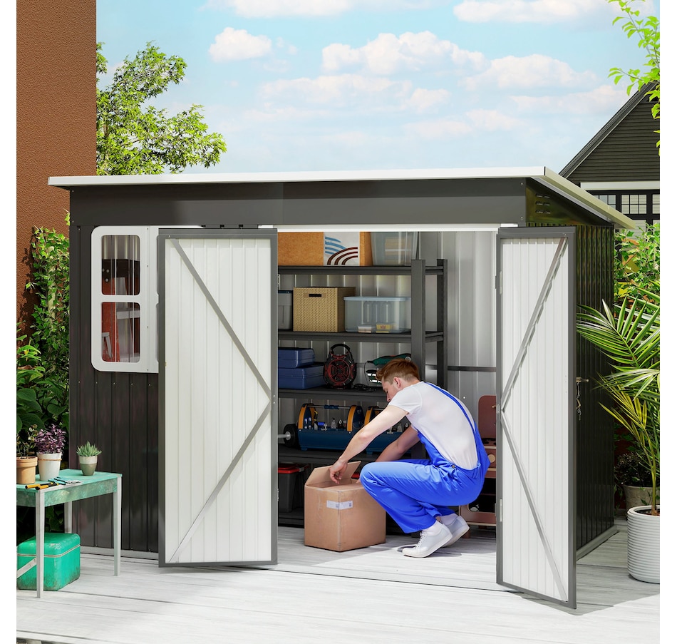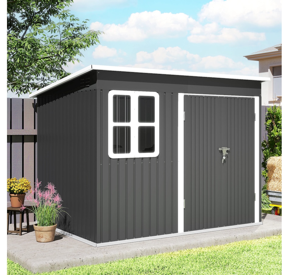 8.5' x 6' Metal Outdoor Storage Shed with Window, Lockable Doors
