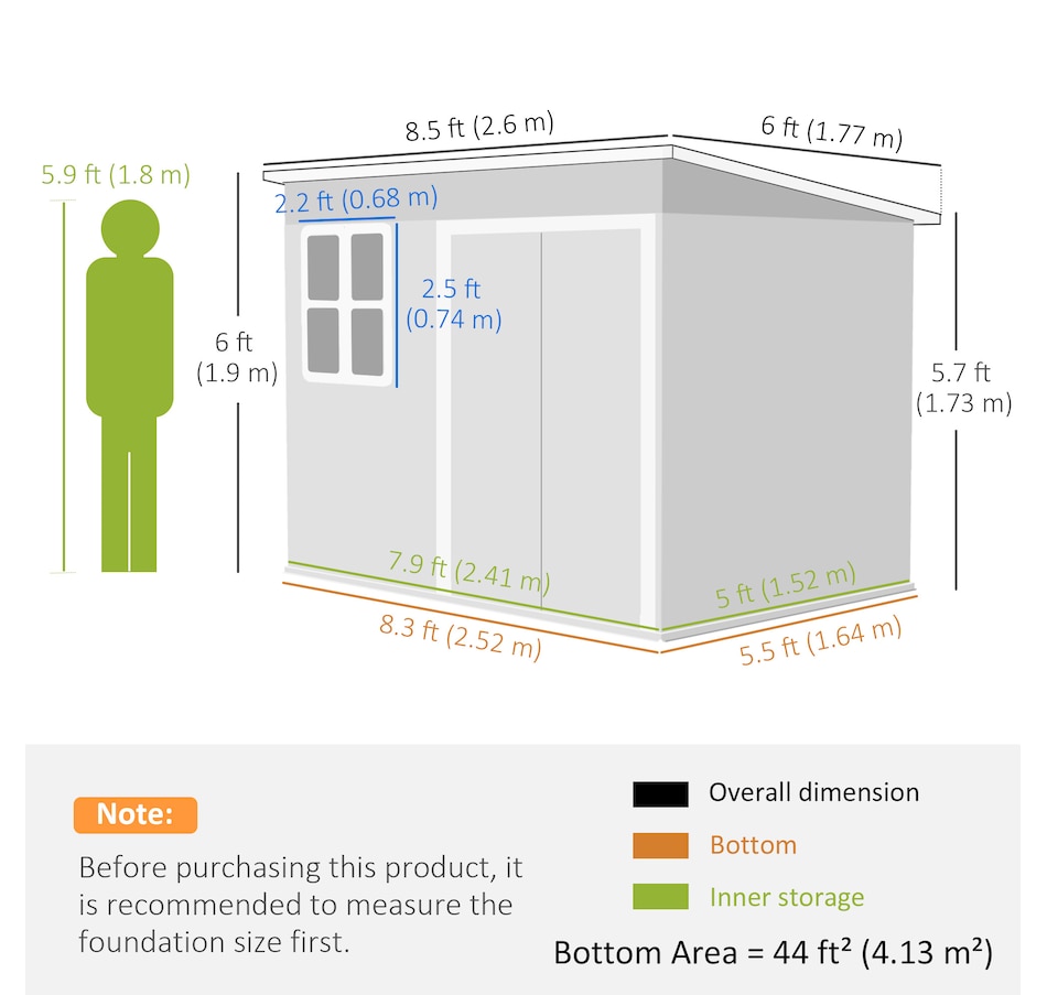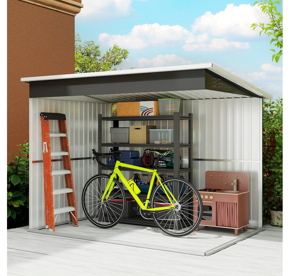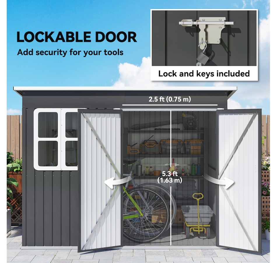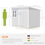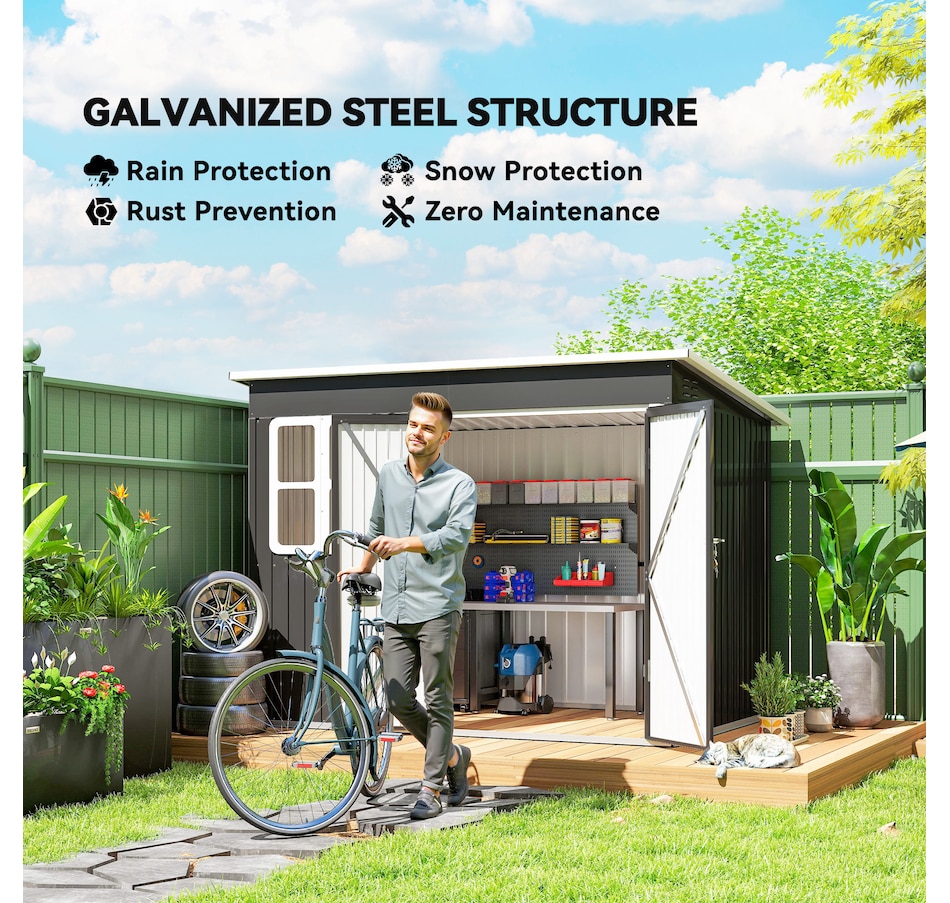 Discover the Outsunny Shed, a spacious and practical solution for organizing your outdoor space. Its generous interior provides ample room for tools and equipment, while natural light and ventilation enhance usability and comfort. The expansive, secure door ensures easy access, and the robust galvanized steel construction is built for lasting outdoor use.Features: