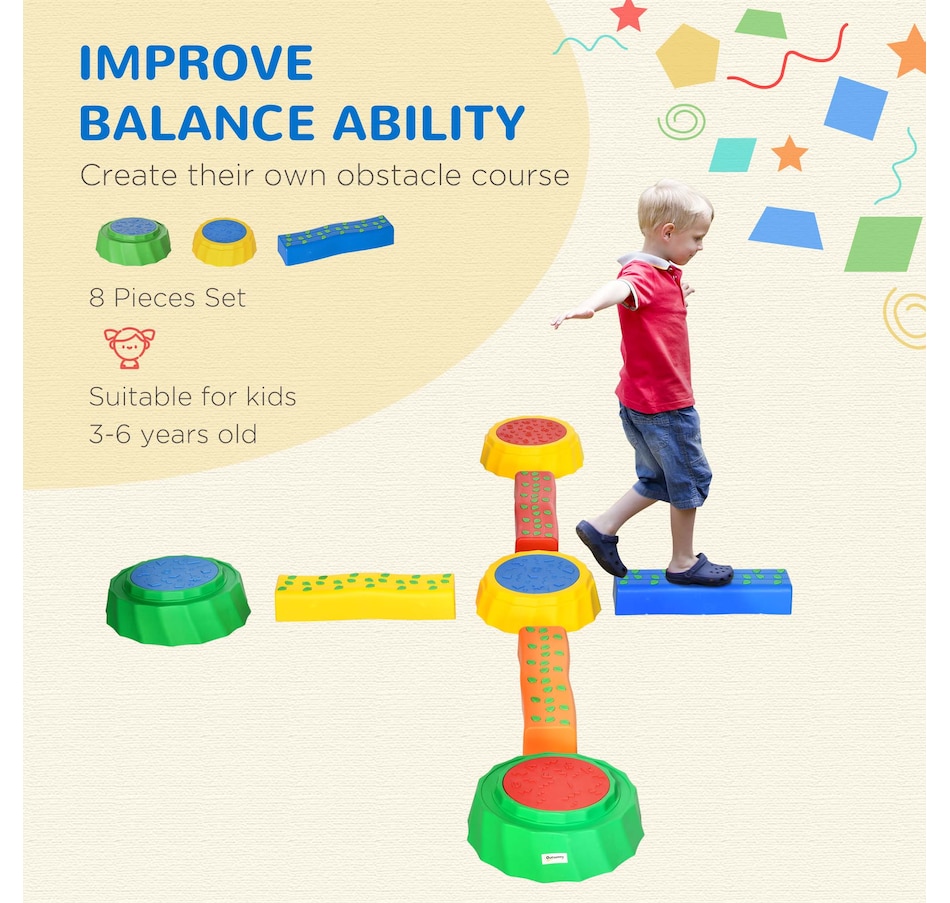 8pcs Balance Beam, 4 Sensory Pads and 4 Beams for Kids 3-6 Years