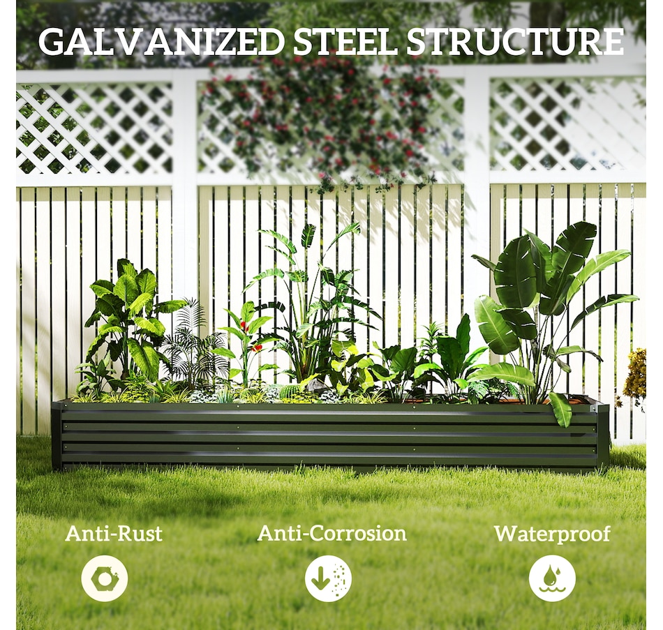 If you have multiple kinds of plants or flowers that you want to keep organised, this Outsunny galvanized raised garden bed is a great choice for you. You can grow plants, vegetables, flowers and more in a space of your choosing. This raised planter made from galvanised steel for strength. The 8'x2' size gives plenty of growth space, with it fully open inside so roots have enough space.