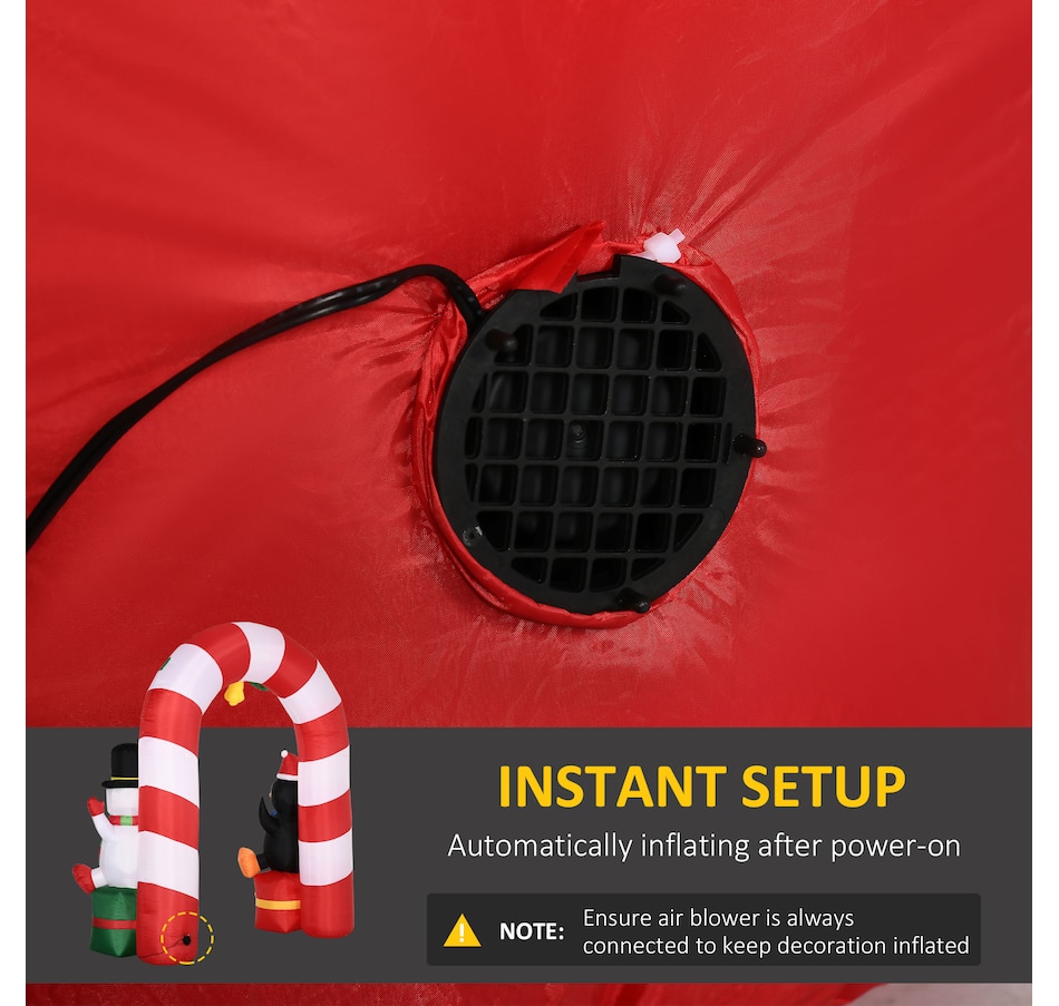 ● Item Label: 844-555V80MX;Note: Make sure the air blower is always connected to a power source to keep the inflatable Christmas candy cane arch inflated;Note: Do not use the inflatable outdoors in heavy rain, snow, or wind.Package Includes: