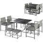 Transform your outdoor gatherings with the Outsunny 9-piece outdoor table and chairs. This patio conversation set includes a table, 4 chairs, and 4 stools that tuck neatly under the table for space-saving magic! Enjoy the comfort of thick, washable cushions and dine in style with a sleek tempered glass tabletop. This dining table set suits any patio conversation set or backyard furniture ensemble.Features: