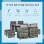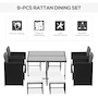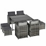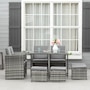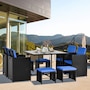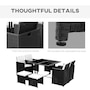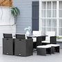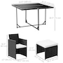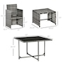 This beautiful rattan dining chair set includes a square table, 4 mono bloc comfort chairs and 4 footstools. The wicker outdoor table set will be ideal for your balcony, terrace, garden and any other outdoor areas. Designed and made of galvanized steel with black braided resin coating, this patio furniture set with table will bring an extra touch of elegance to your exterior!