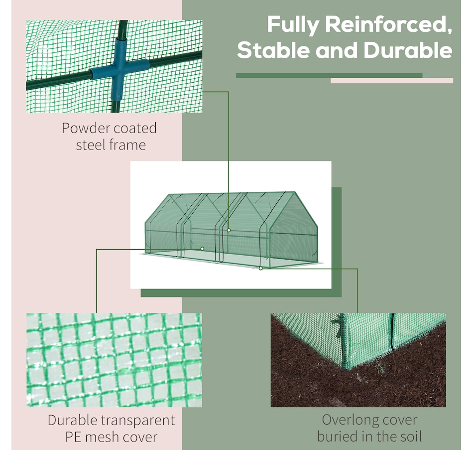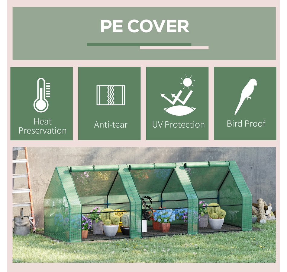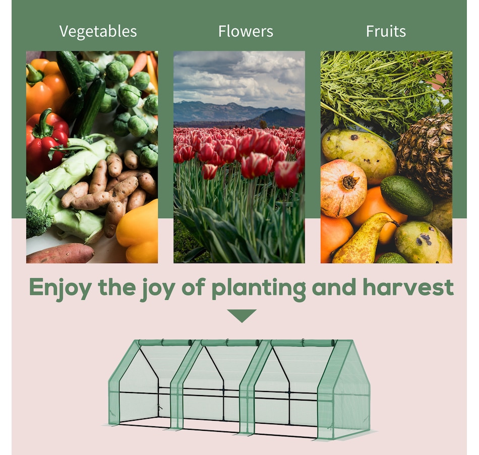 This greenhouse kit utilizes lightweight, yet sturdy. The combination of PE cover and steel frame is an incredibly durable final product that can fit the sunroom in any tight spaces. The 3 zipper doors of the backyard greenhouse allows for easy access and ventilation while it also can be sealed in to maintain the internal climate. Perfect if you want to reduce excessive heat or cold and keep your seedlings safe throughout the seasons. Start your backyard gardening with our patio greenhouse.