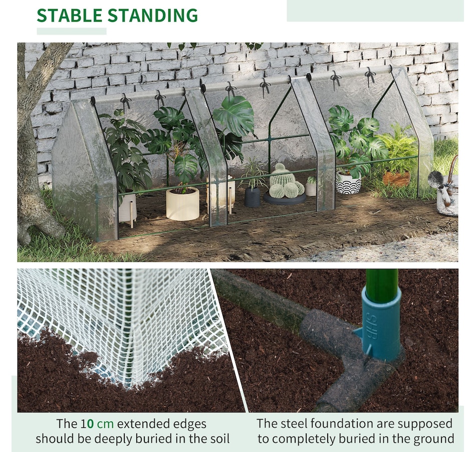 This greenhouse kit utilizes lightweight, yet sturdy. The combination of PE cover and steel frame is an incredibly durable final product that can fit the sunroom in any tight spaces. The 3 zipper doors of the backyard greenhouse allows for easy access and ventilation while it also can be sealed in to maintain the internal climate. Perfect if you want to reduce excessive heat or cold and keep your seedlings safe throughout the seasons. Start your backyard gardening with our patio greenhouse.Features: