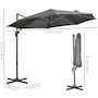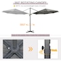 This Outsunny offset patio umbrella is an excellent shade option for sunny days. It is a stylish Roma Parasol, superior in material and workmanship. This sizeable outdoor garden umbrella is designed for durability and is made with aluminum posts, steel ribs, and UV and water-resistant fabric. It complements any villa, garden, courtyard, swimming pool, plaza, and more. Just relax outside daily with this sizeable protective patio umbrella with a base.