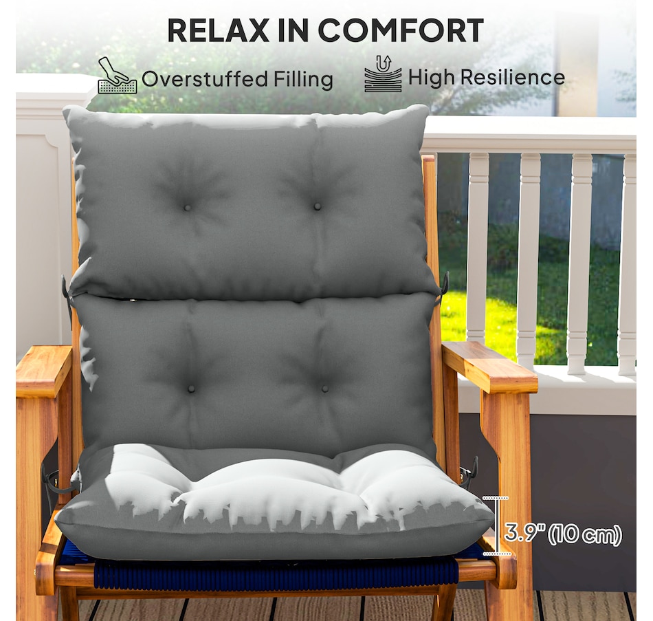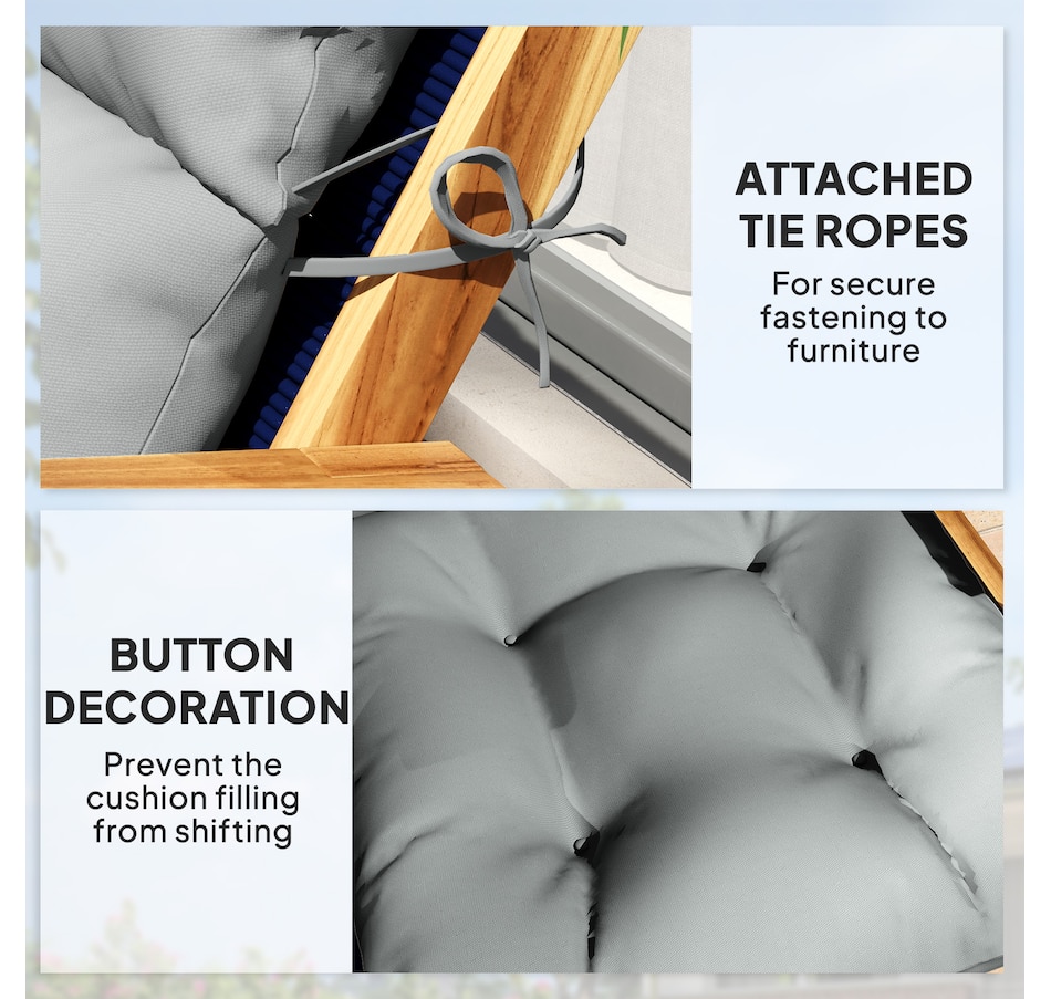 Sitting comfort, transformed with this Outsunny outdoor cushion. A combined seat and back design keeps your whole body comfortable. The fabric cover is smooth on the skin - it's breathable and fade-resistant. Complete with tie fastenings to secure to your seat. Just relax with our 10 cm thick cushion with high-resilience filling.Features: