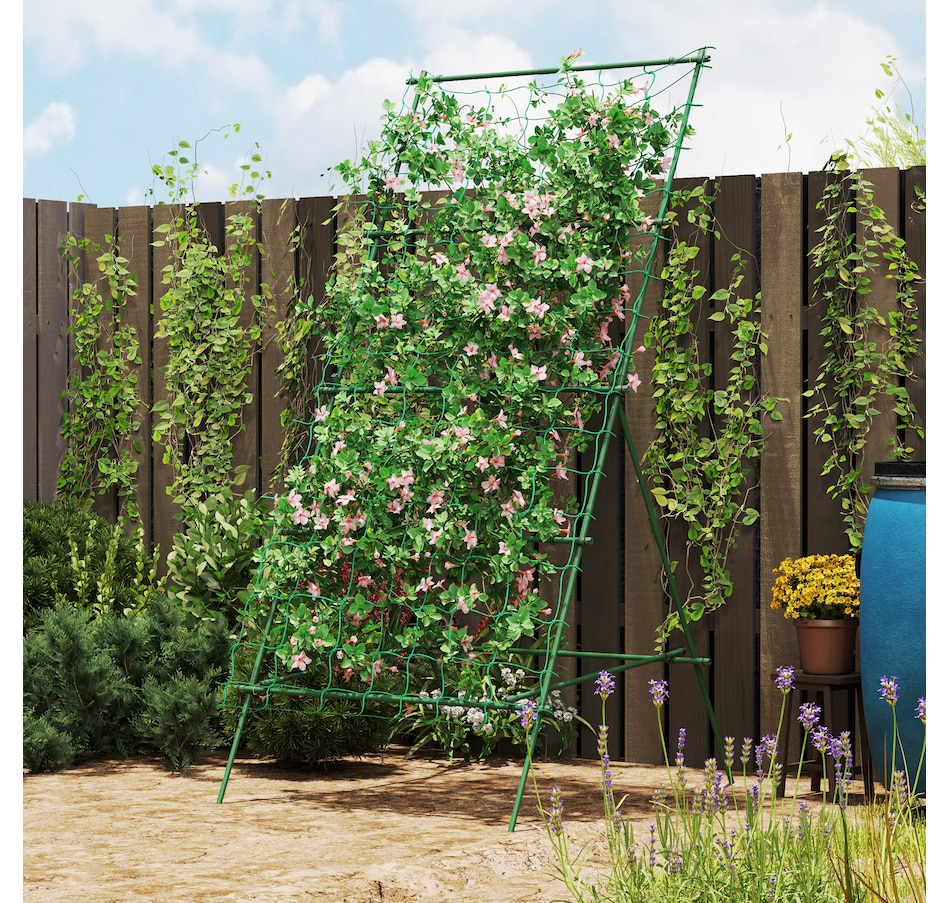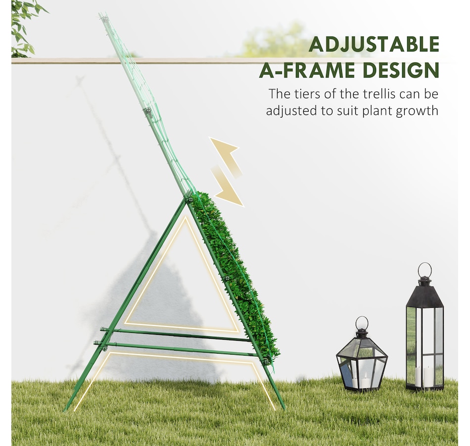 Transform your garden with the Outsunny A-shaped pea trellis - designed to give climbing vegetables the strong, reliable support they often lack. The adjustable tiers grow with your plants, preventing sagging and tangling, while the included net keeps vines neatly guided. Crafted from weather-resistant PE-coated steel, this rustproof trellis stands firm through the seasons, helping your peas, cucumbers, and beans thrive beautifully.