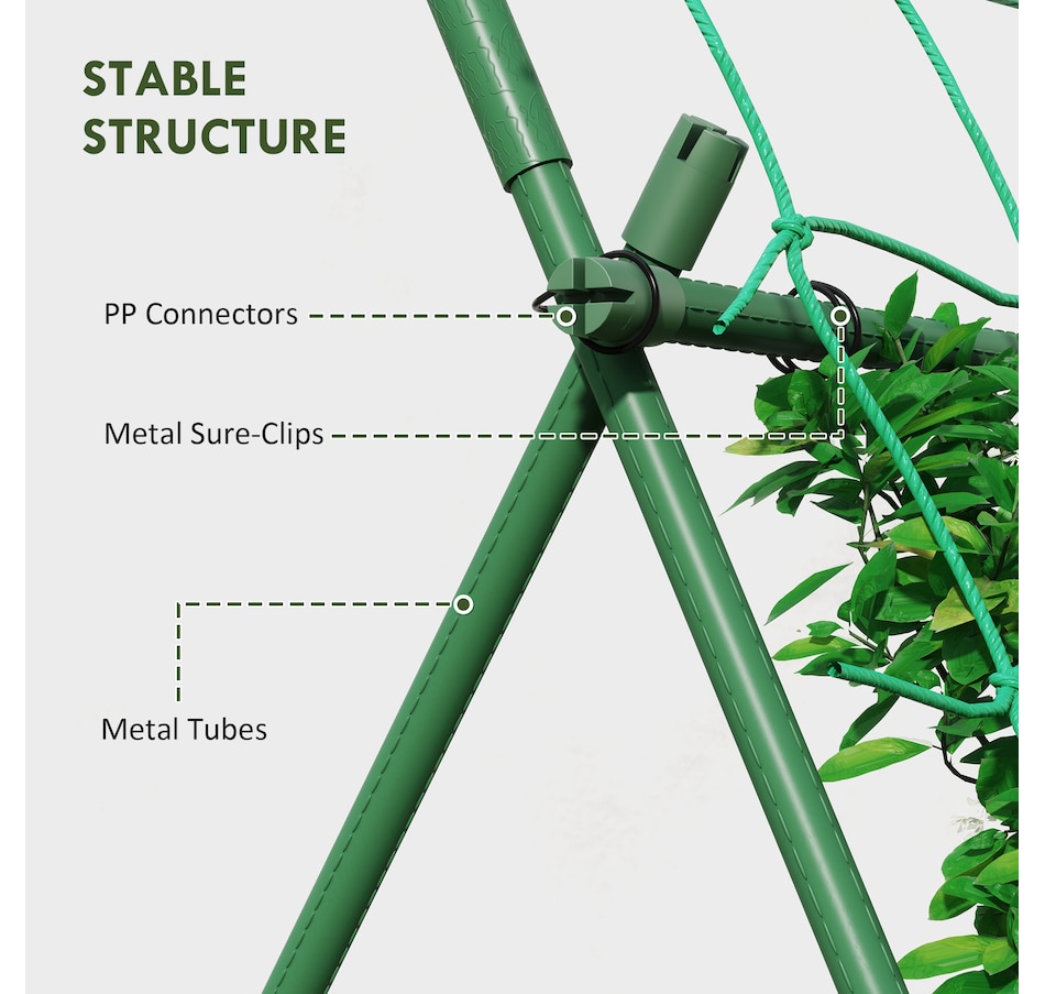 ● The A-shaped design of the rose trellis maximizes stability for climbing plants;