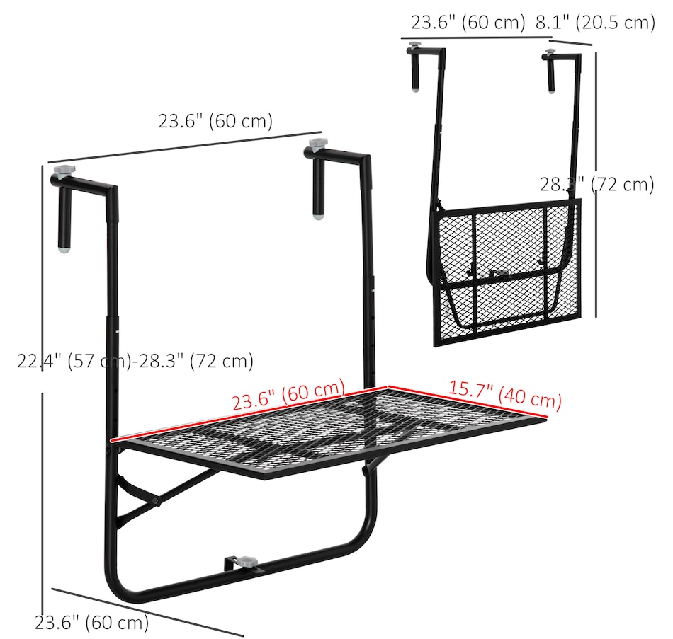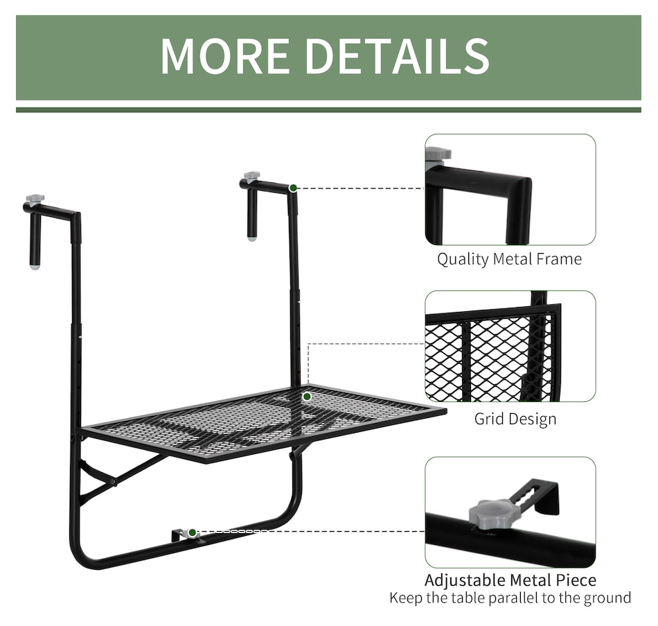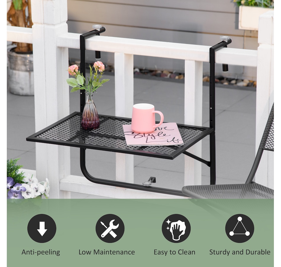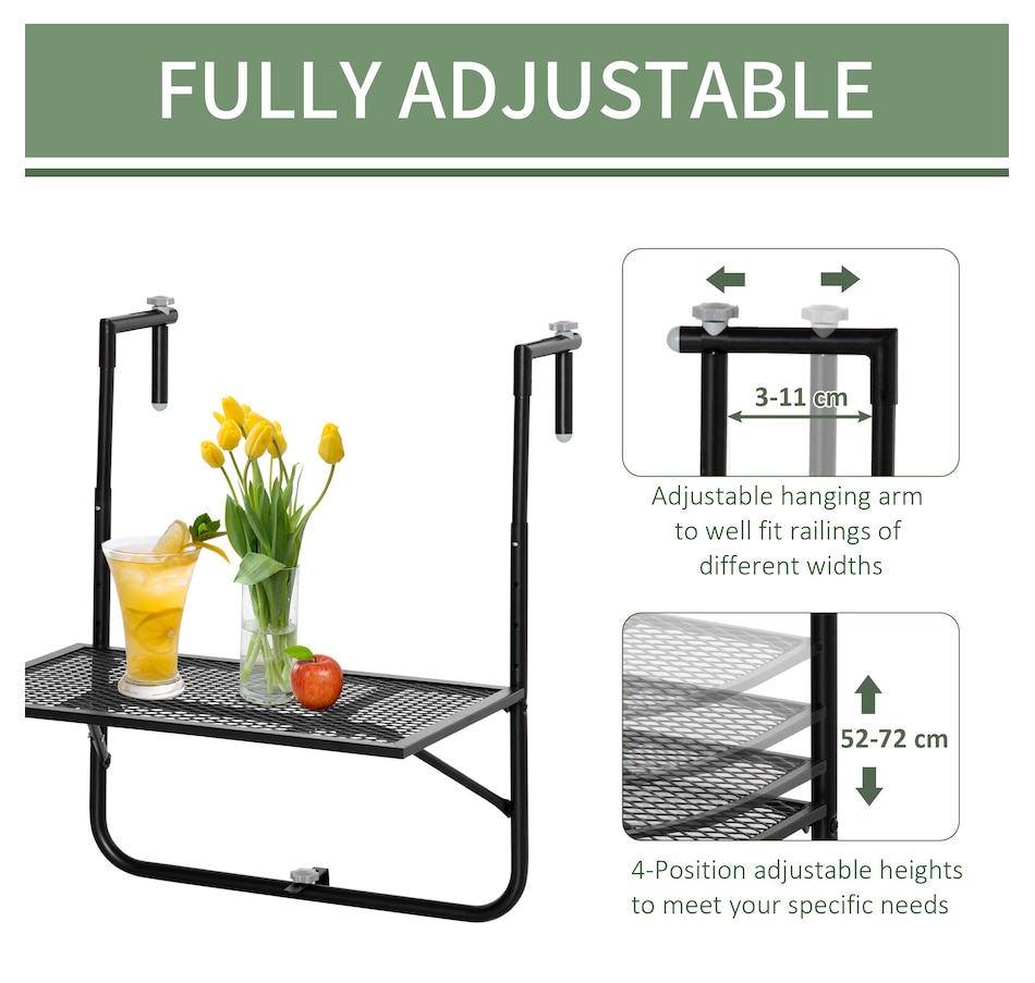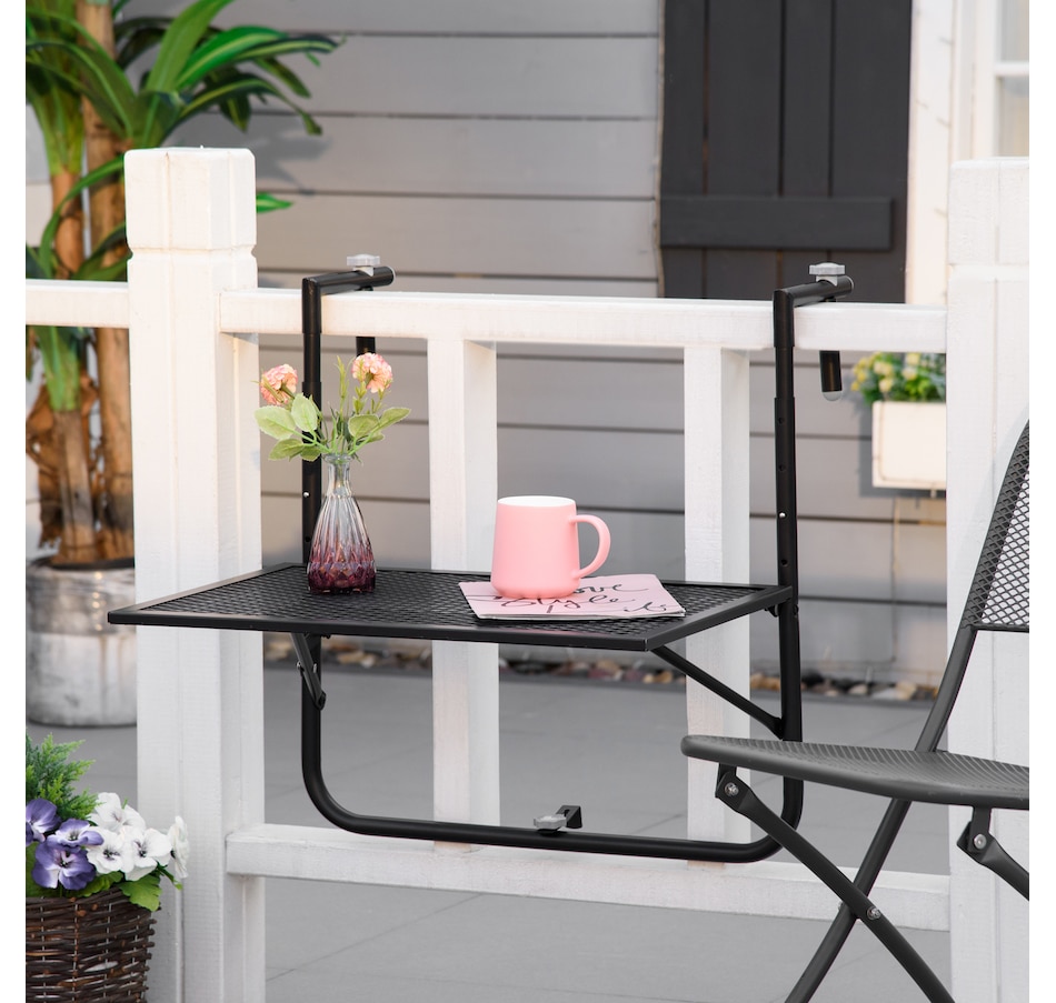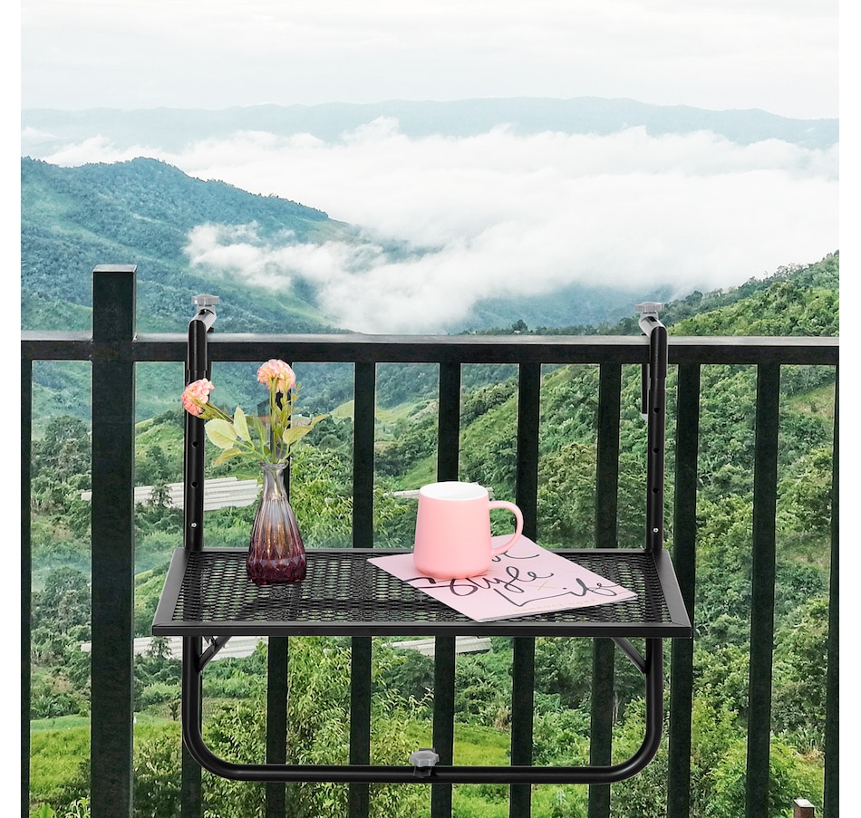 Balcony Hanging Table, Adjustable Folding for Patio, Garden, Black