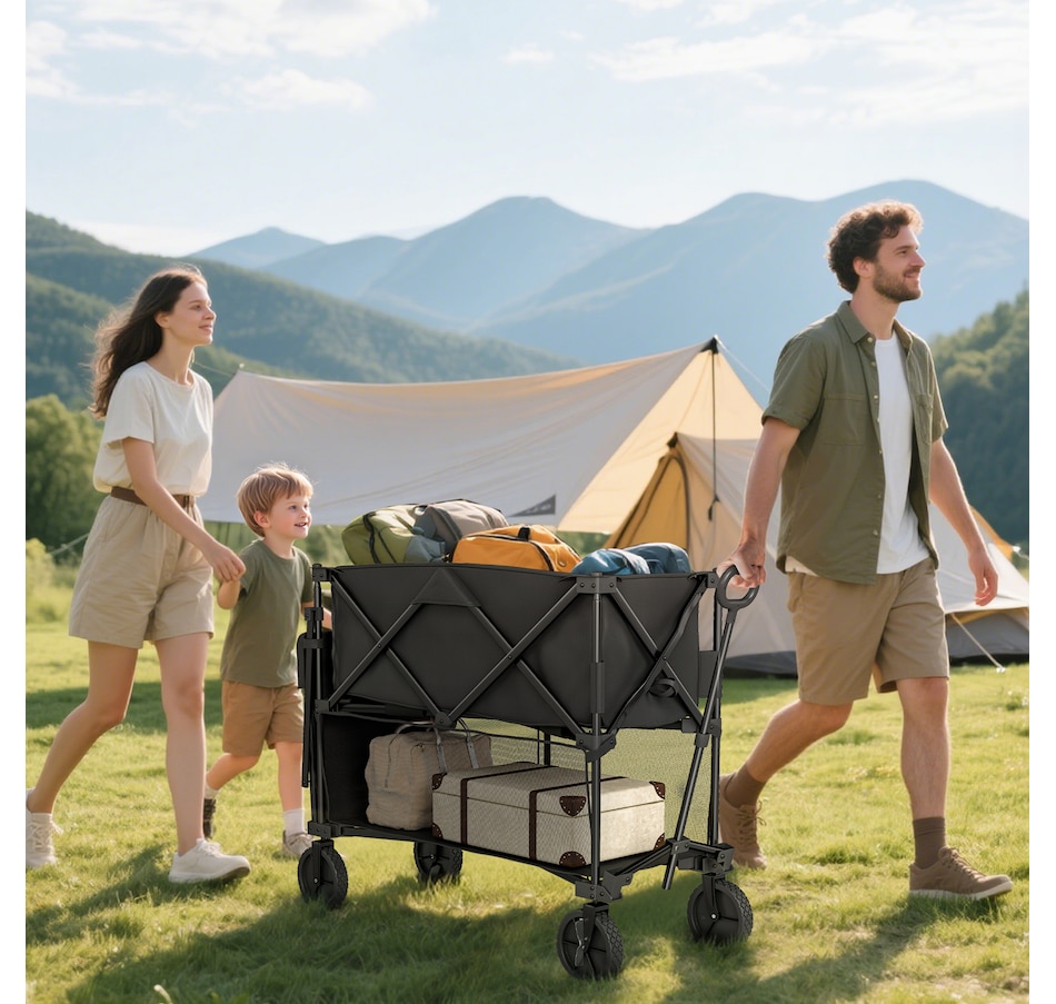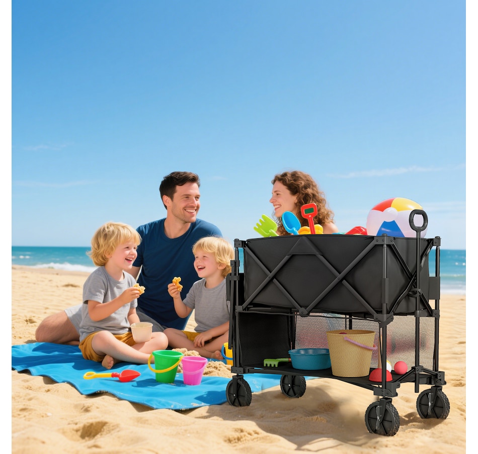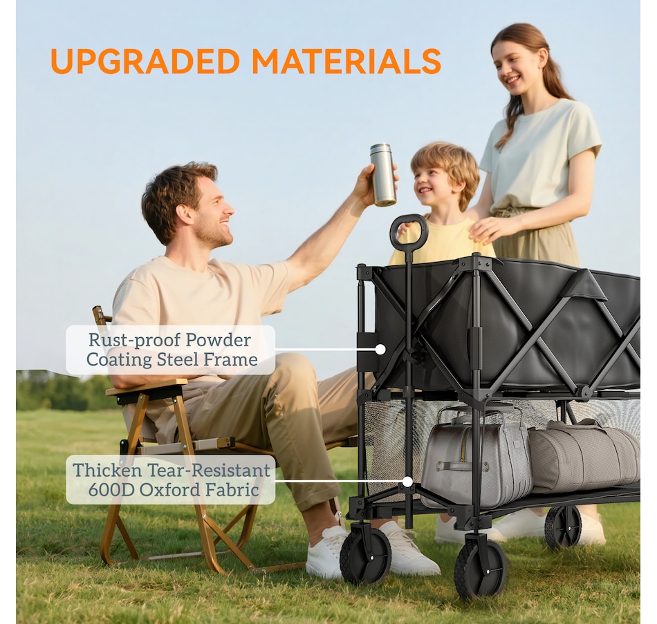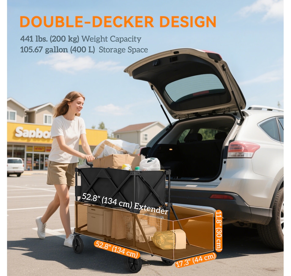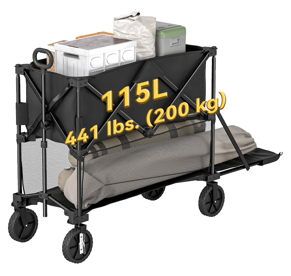 Double Decker Folding Wagon Cart with 450LBS & 350L Capacity