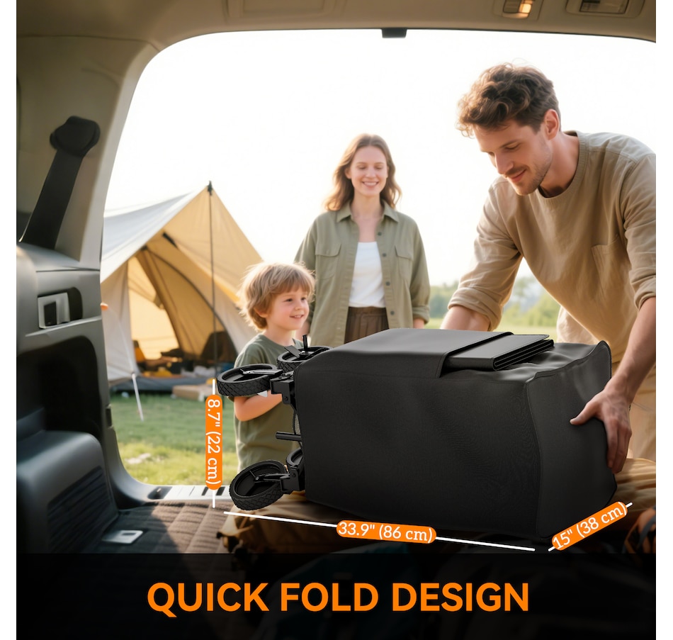 ● Folded Dimensions: 15" L x 8.7" W x 33.9" H (38 x 22 x 86 cm);