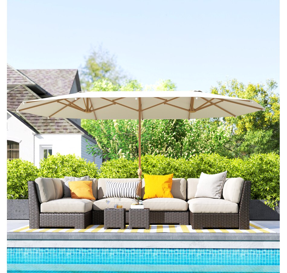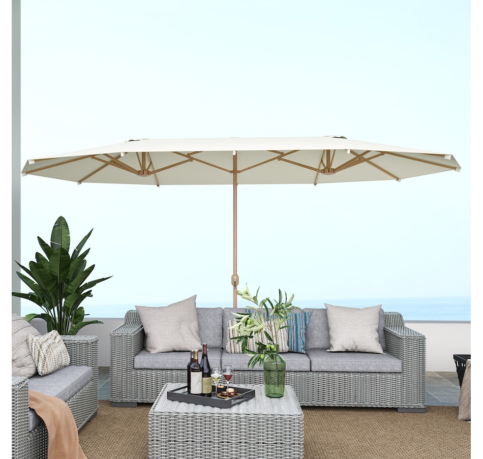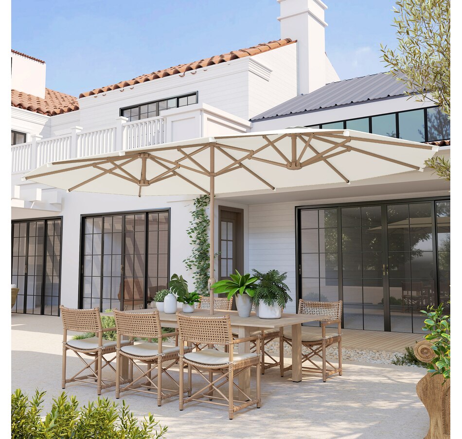 Double Garden Parasol 179.1"W x 104.3"D , UV30+ Protection, Beige