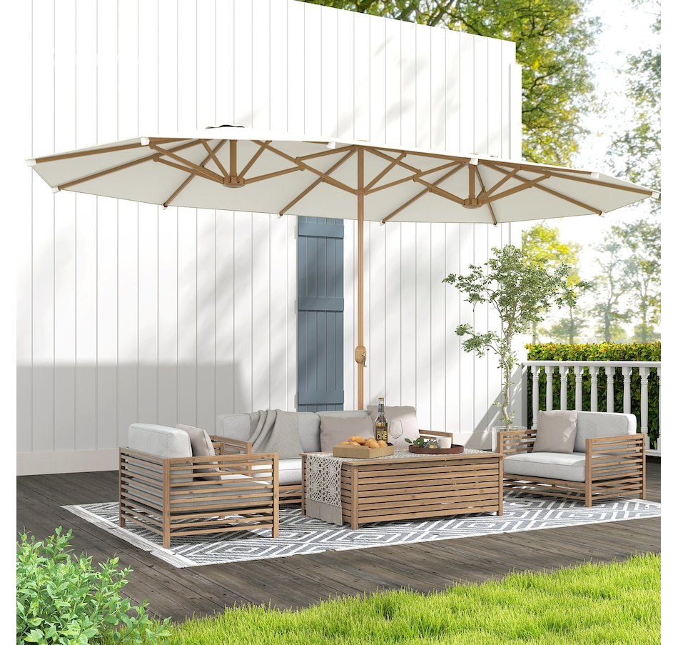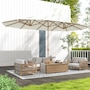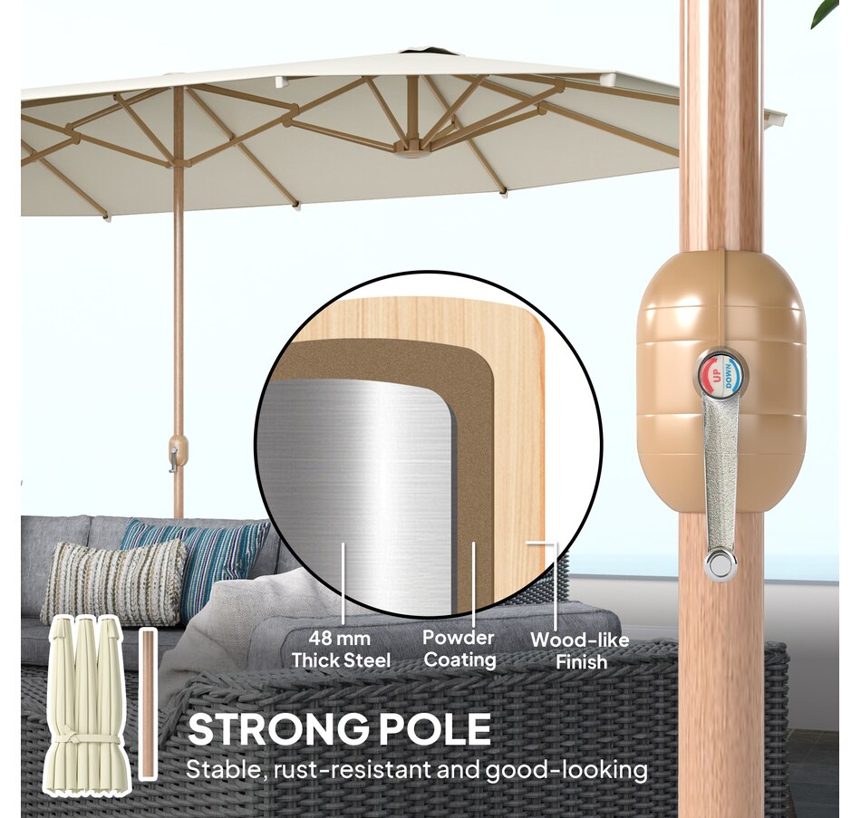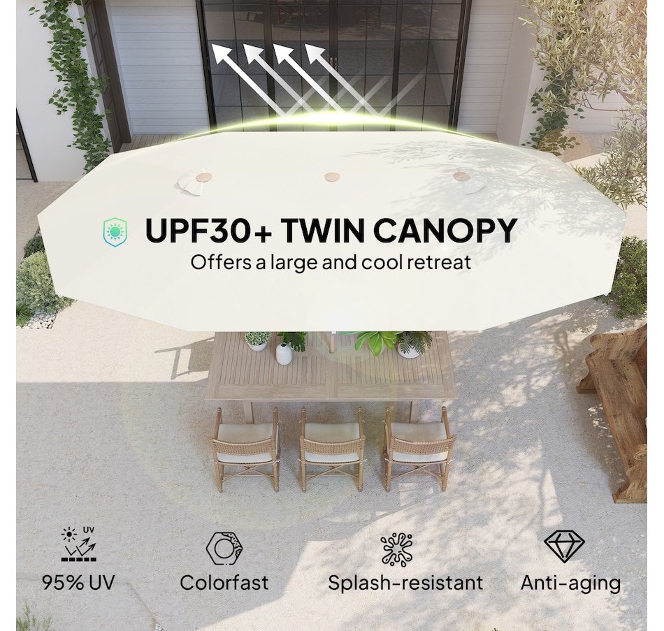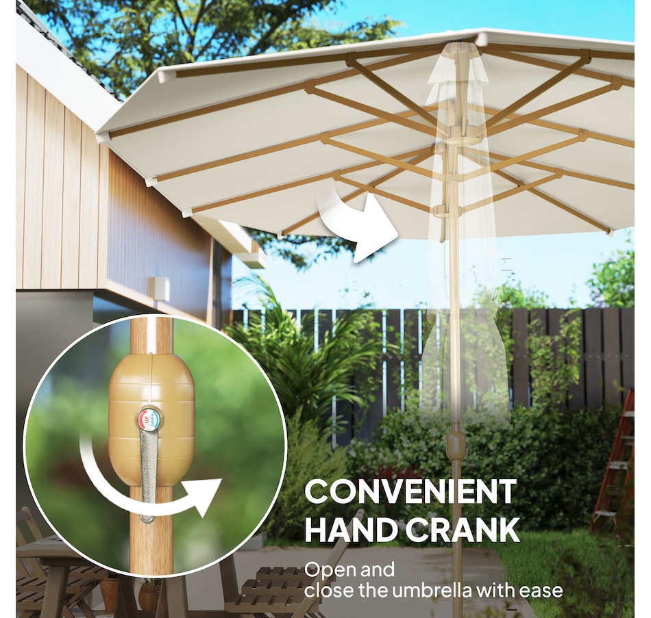 Enjoy generous shade in your outdoor areas with our Outsunny double umbrella, designed with UV30 protection. The smooth crank mechanism lets you open and close with ease, while the splash- and UV-resistant polyester fabric keeps colors vibrant, turning any outdoor event into a relaxing, shaded retreat.