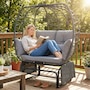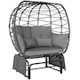 Double Outdoor Glider Egg Chair with Cushions, Pillows, Dark Grey
