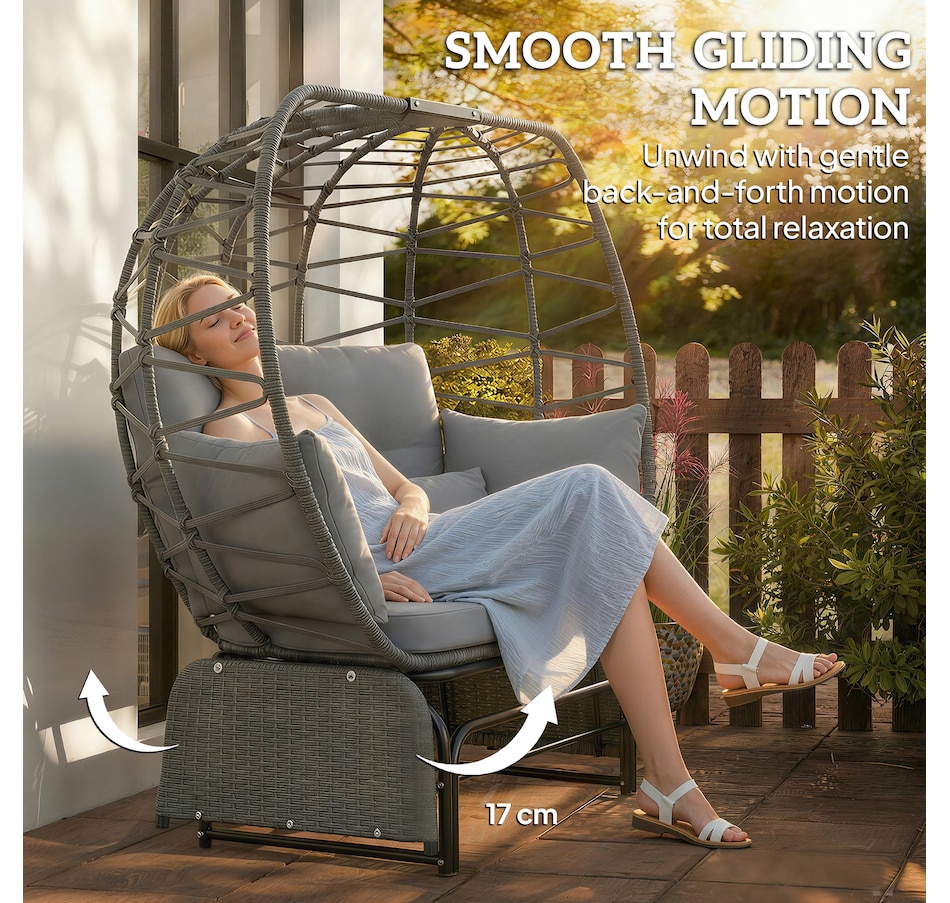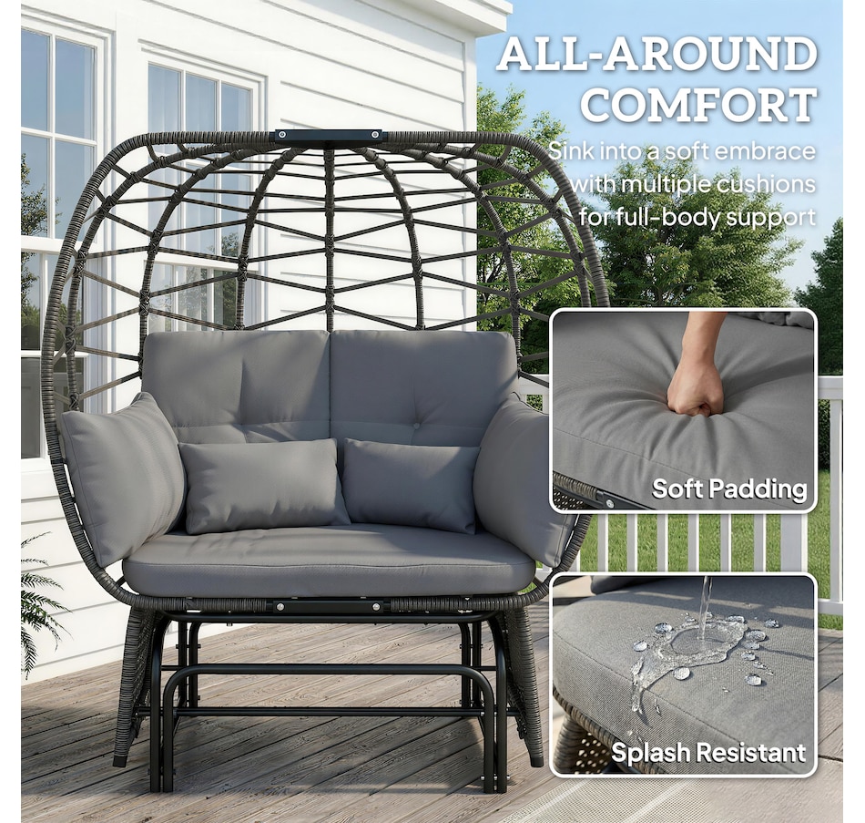 After a long day, finding a moment of true peace can feel impossible. The stress lingers, and ordinary chairs just don't offer the deep relaxation you crave. Outdoor glider from Outsunny transforms your patio into a serene retreat. Unique egg patio loveseat envelops you, while plush cushions and a gentle glide base make your stress melt away. This egg patio bench provides a cozy, stylish escape, letting you reclaim your tranquility.