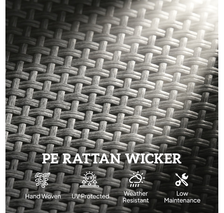 ● All weather PE wicker is stylish and tough for your porch or poolside;
