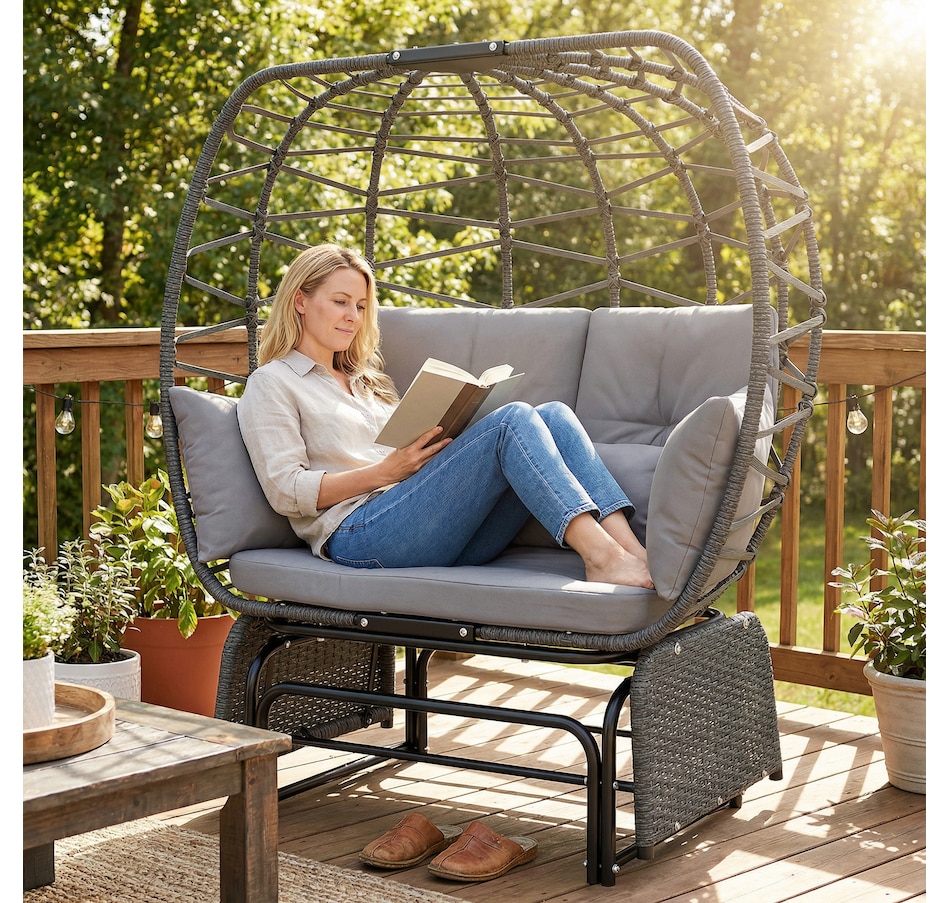 ● Unique double egg glider chair creates a cozy, private nook for your patio;