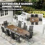 Host memorable gatherings with the Outsunny Extendable Dining Table, a wonderful blend of style and functionality. This expandable patio table comfortably seats 6-8 guests and features sleek aluminium edging and robust steel tube legs. Enjoy the charm of its wood-grain top, crafted for easy cleaning and a stunning look. Adjustable foot covers ensure stability on any patio surface. Transform your outdoor dining experience today!Features: