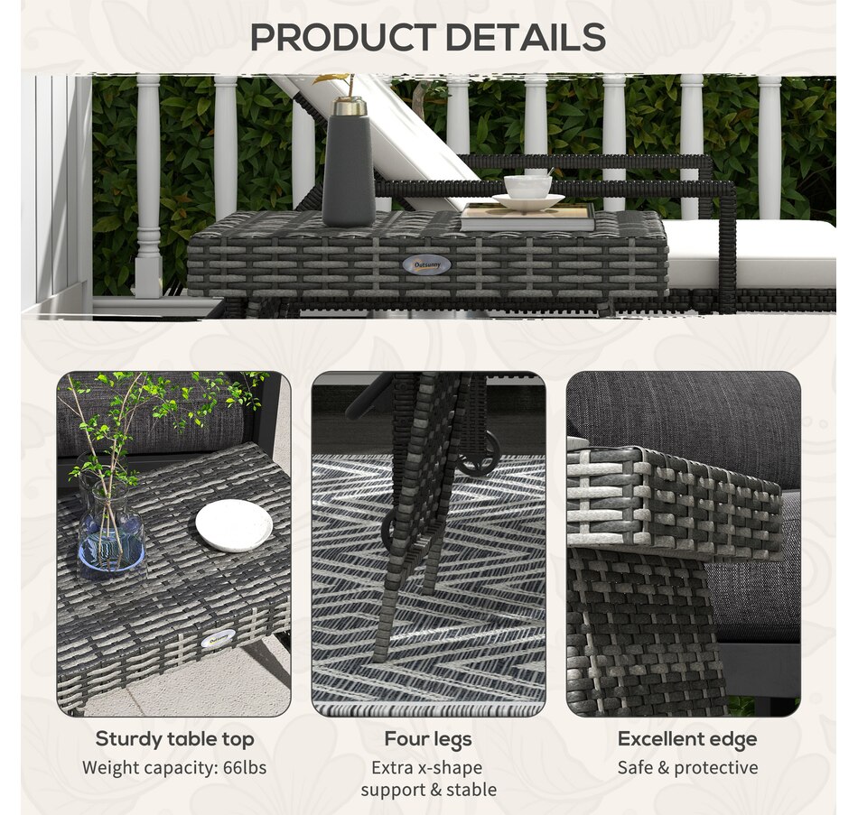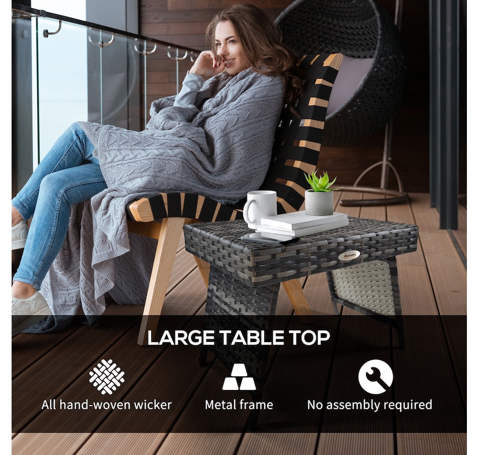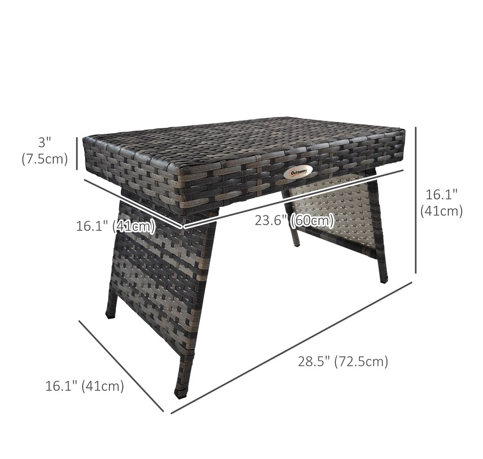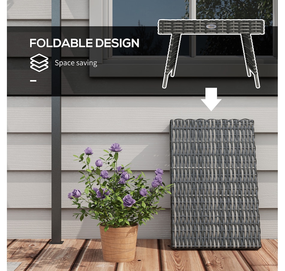 Enjoy plenty of additional table space at your next pool party or outdoor barbeque with this wicker foldable table from Outsunny! This outdoor patio furniture can be used to meet your entertainment needs whether you have a few guests over or many. When not in use, you can easily stack them together and store in a corner space. Wrapped from top to bottom in tightly-woven wicker, these tables are weather-resistant for season-long-use. It is a great addition to your garden furniture.Features: