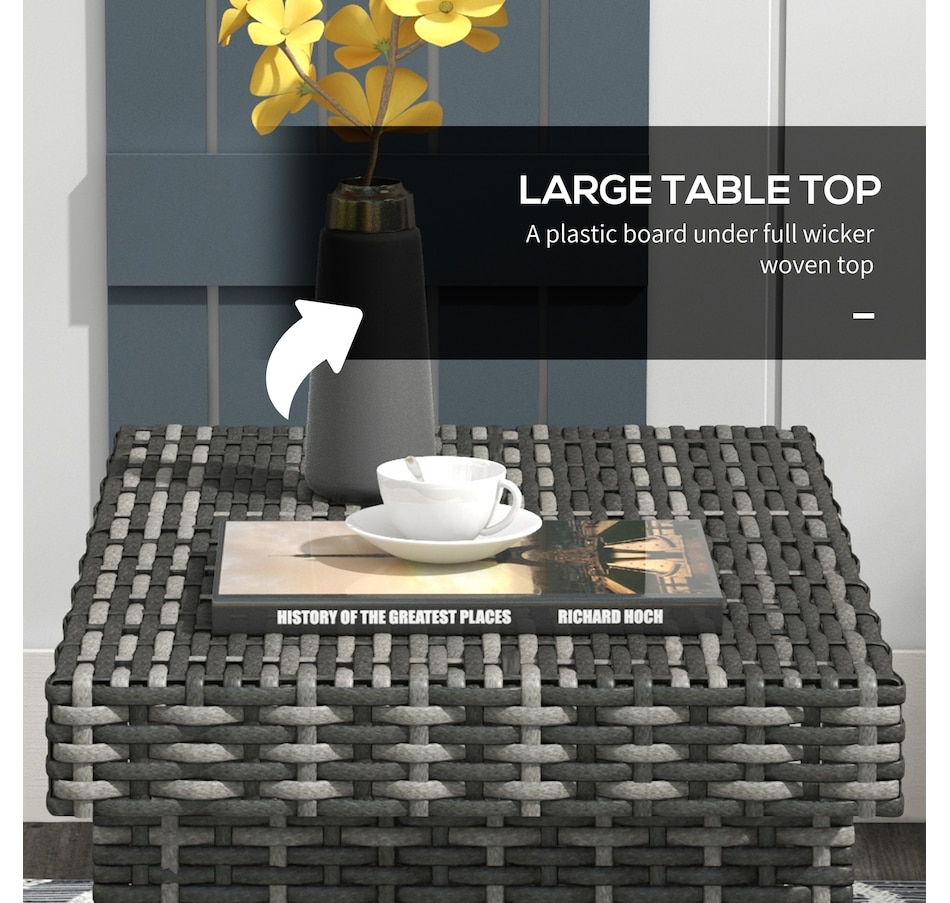 ● Weather resistant PE Rattan wicker top with plastic board underneath;