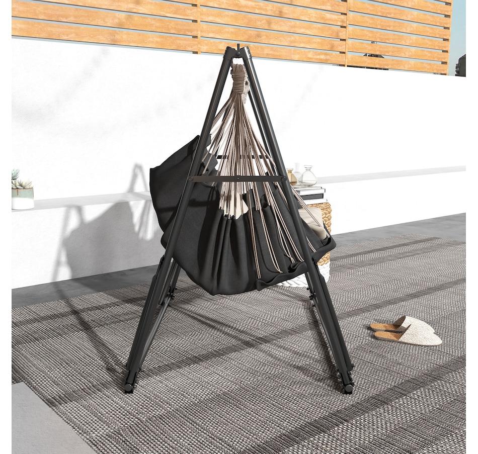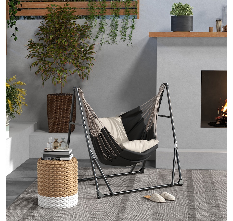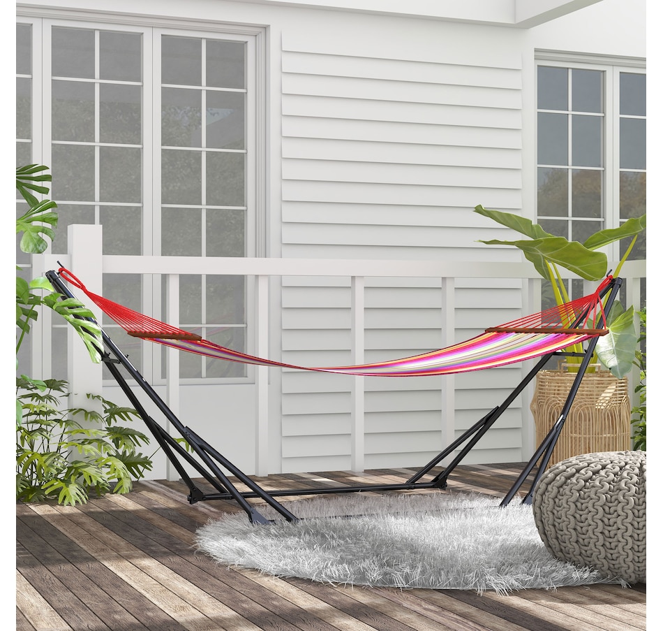 Hang your hammock anywhere without the need for a tree, thanks to this stand from Outsunny. It is made from powder-coated steel for good strength and durability. This 2-in-1 design stand can be twisted easily from a hammock net stand and a hammock chair stand. The foldable design makes it easy to store and transport. Safe, stable and weather resistant, it is great for using all year-round outdoors relaxing.