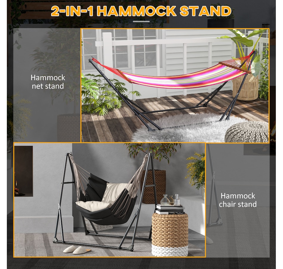 ● 2 in 1 hammock stand can be twisted easily from a hammock net stand and a hammock chair stand;