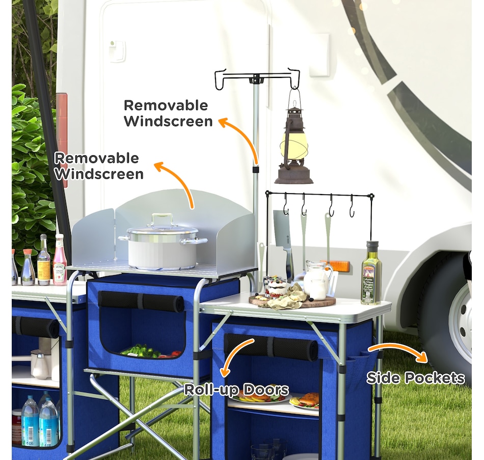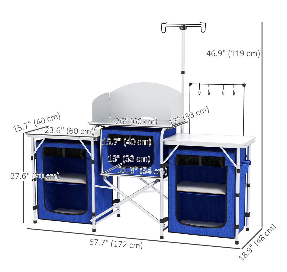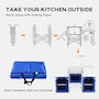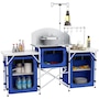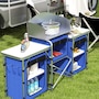 Folding Camping Kitchen with Windshield Fabric Cupboards Blue