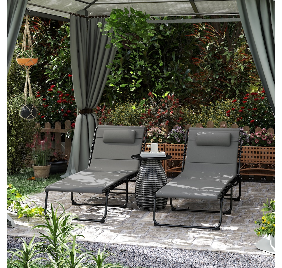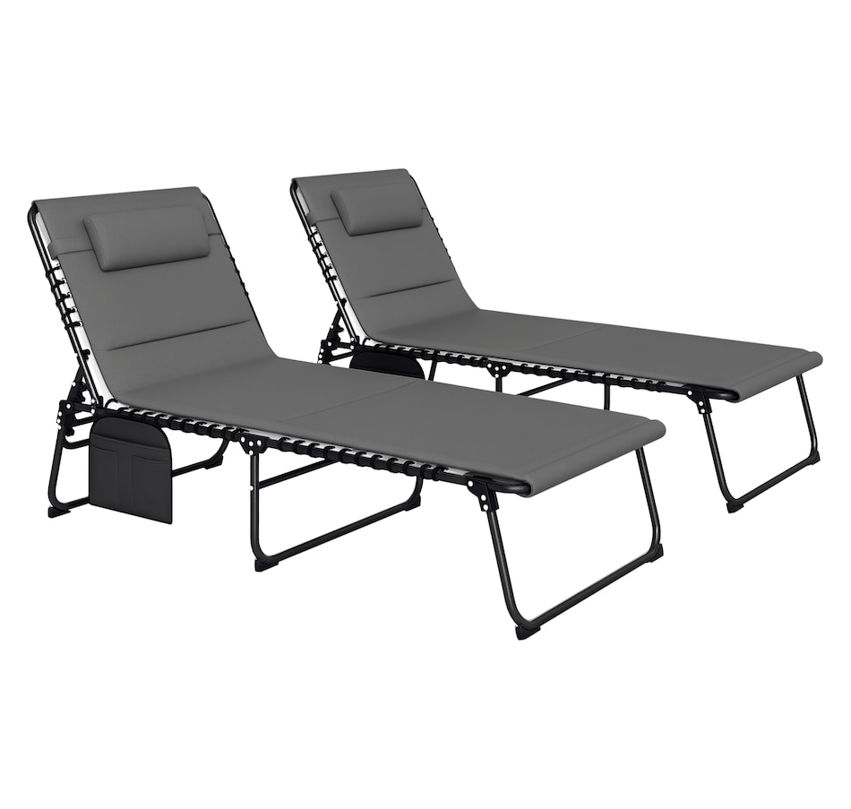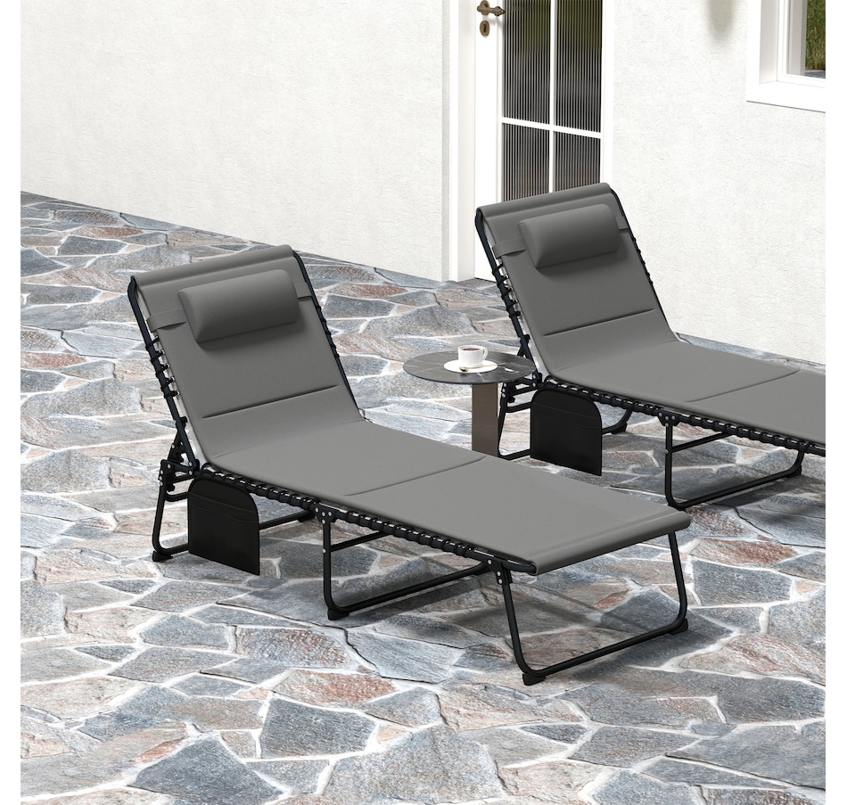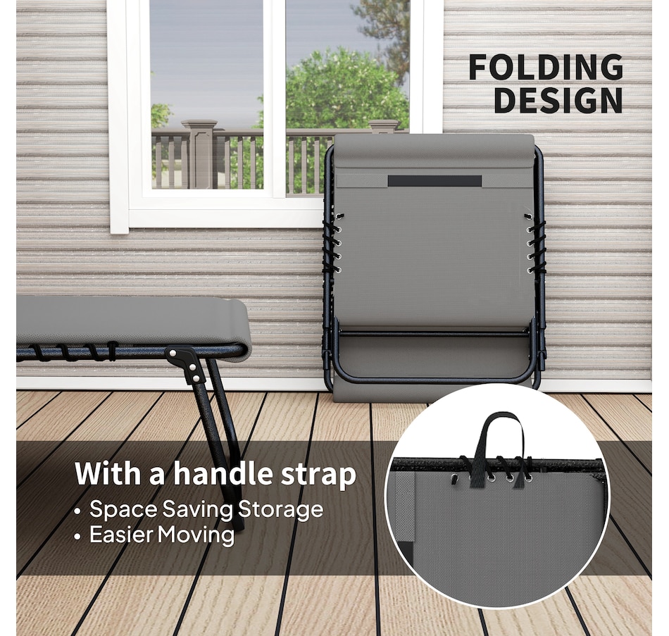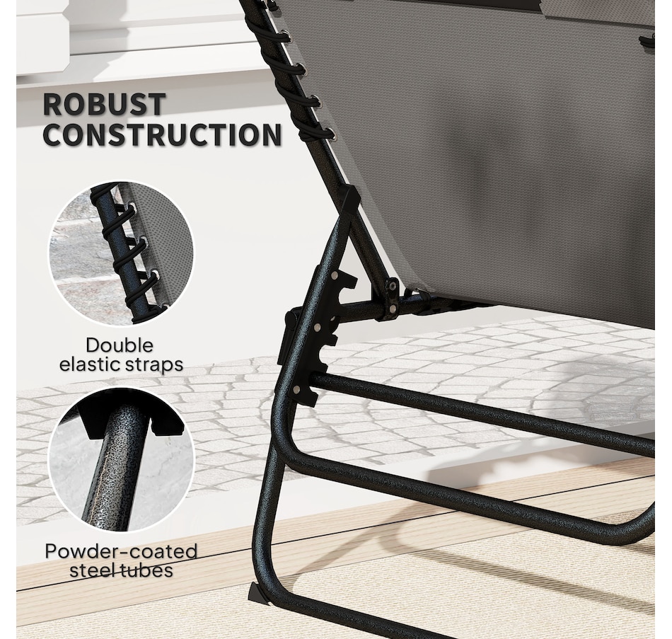 Lounging with a friend has never been so relaxing, thanks to the beach lounge chair set from Outsunny. Recline with ease into an optimal spot. Breathable mesh fabric fixed on the outdoor double chaise lounge chair to take the weight off your body and relieve the pressure. A quick-drying pad and head pillow add more comfort and convenience. The heavy-duty steel outdoor chaise lounge has a strong core and a side storage pocket, meaning you won't have to move your magazines once you sit down.Features: